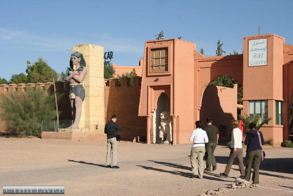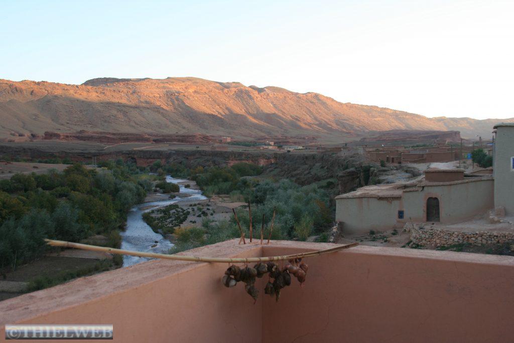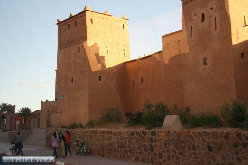 Ziel der Tagesetappe ist dann Quarzazate dem Zentrum der marokkanischen Filmindustrie. Eine Besichtigung des Kasba Taourit gehört hier einfach zum Programm. Diese „Lehmburg“ ist ziemlich gut erhalten; es ist wirklich sehr spannend wie verwinkelt diese „Häuser“ erbaut wurden. In der Gegend von Quarzazate haben sich mittlerweile einige Filmstudios angesiedelt. Die Wüstenlandschaft mit dem Hohen Atlas im Hintergrund hat in der Vergangenheit viele interessante Kulissen, auch für Hollywoodschinken, geboten. In „Ali Ben Haddon“, einer Kasba die mittlerweile zum Weltkulturerbe der UNESCO zählt wurden unter anderem Szenen aus „Gladiator“ gedreht.