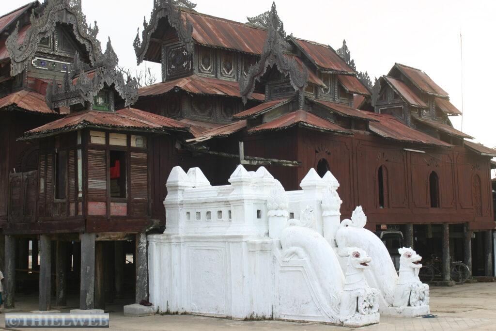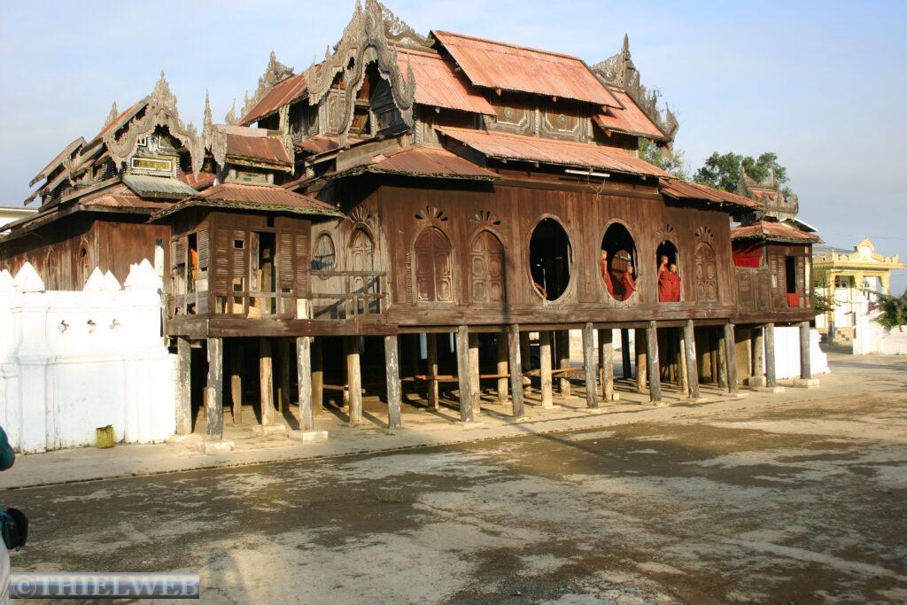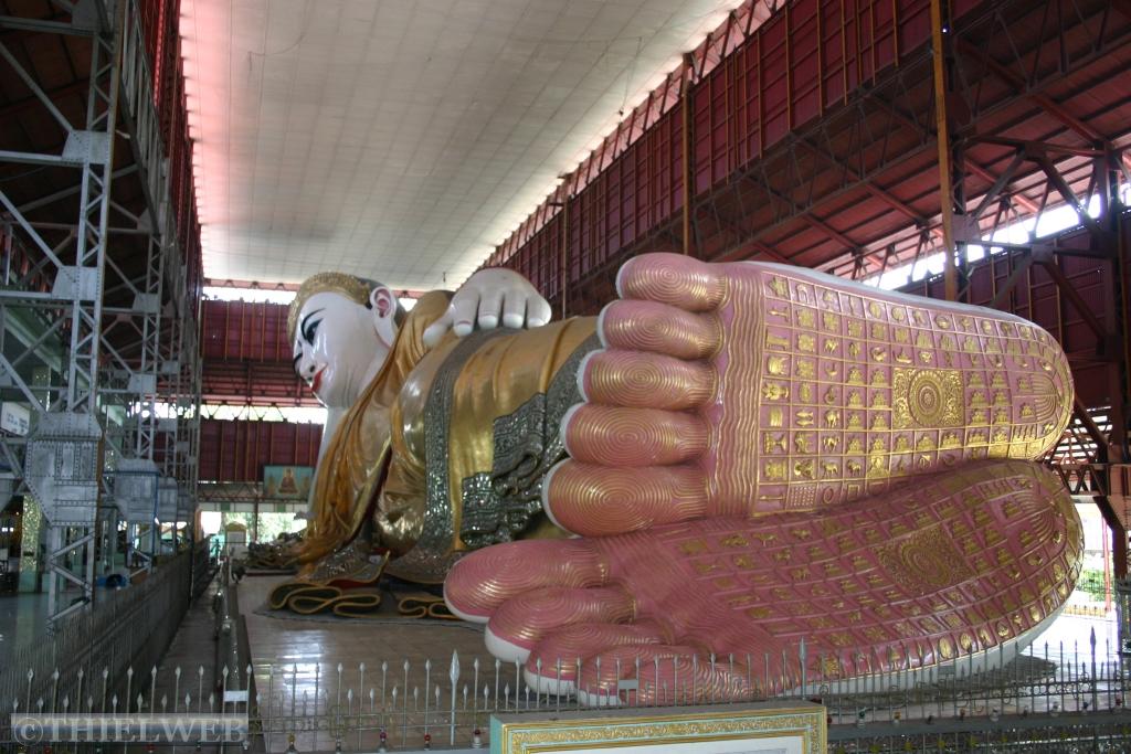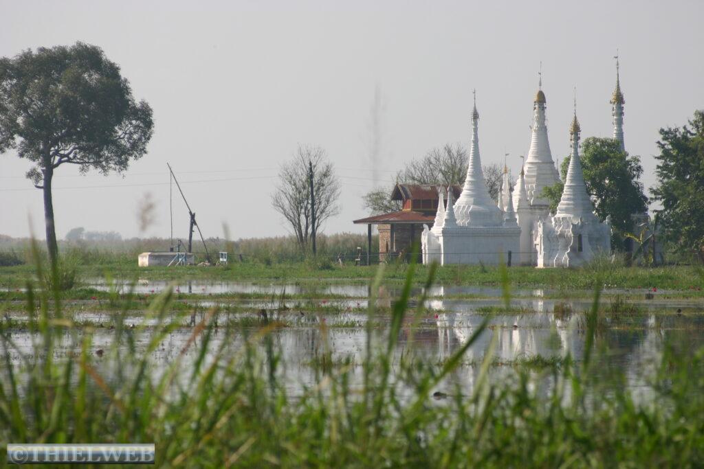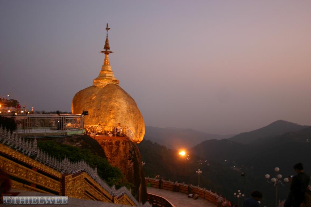Von Yangon reisen wir weiter nach Bago. Auch Bago hat seine eigene Pagode. Dieser Umstand ist in Myanmar eigentlich nichts besonderes, eher die Normalität, allerdings überragt Bagos Shwemawdaw Pagode ihre weit berühmtere Nachbarin von Yangon noch um einige Meter. Reicht sie von ihrem Charisma und Goldglanz, der Schönheit der Tazaungs und Zayats (Pavillon und Rathaus einer Pagode) sicherlich nicht an die Shwedagon heran, so beeindruckt sie dennoch allein schon ihrer Mächtigkeit wegen. Neben der Shwemawdaw zieht vor allem der große liegende Shwethalyaung Buddha die Besucher nach Bago. Dieser sich im Zustand des Übergangs ins Nirwana befindliche Buddha ist zweifellos der schönste seiner Art in Myanmar. Neben allen Sehenswürdigkeiten ist Bago für uns, wie auch für die meisten anderen Reisenden, Ausgangspunkt für unsere Exkursion zum sagenumwobenen Felsen von Kyaikto. Nach mehreren Stunden Fahrt und Wanderung können wir den goldenen Steinblock erreichen, der, scheinbar jeden Augenblick in die Tiefe stürzend, auf einem Felsvorsprung balanciert. Doch zweifellos sitzt er fest – schließlich hält ein Haar Buddhas ihn im Gleichgewicht. Die Kraft des Glaubens ist bekanntermaßen unerschöpflich. Ganz in der Nähe dieses Heiligtums beziehen wir unser Hotel, bevor wir am nächsten Morgen unsere Fahrt in Richtung Thazi antreten.