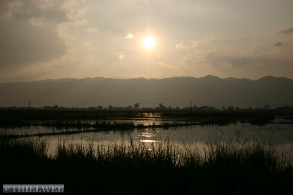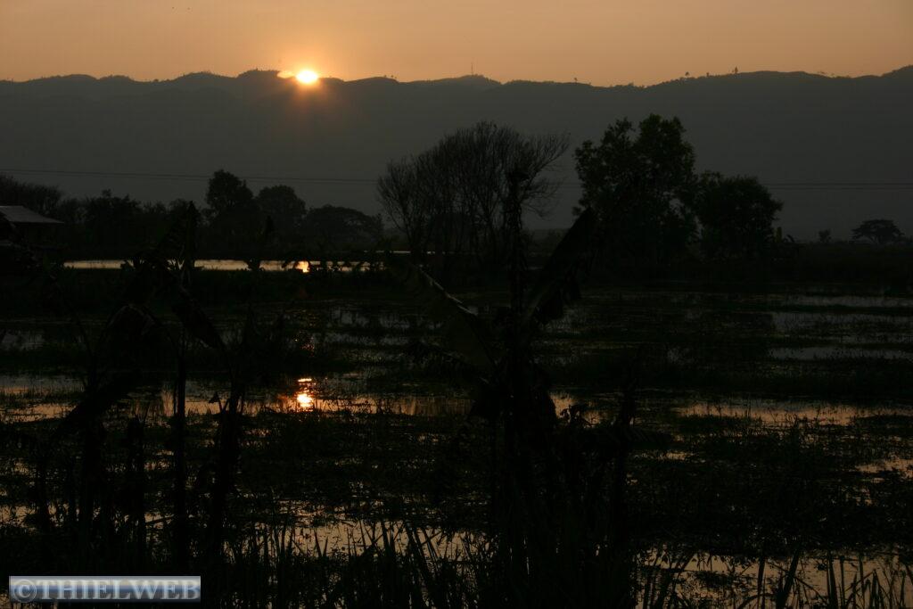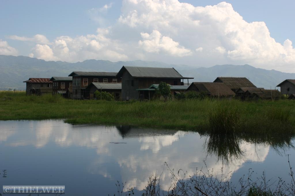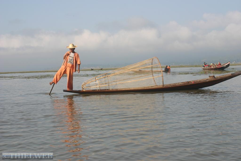 Wir verlassen Kyaikto und fahren zurück nach Yangon, um von dort aus den Flug in Richtung Thazi, einem wichtigen Knotenpunkt für Bahnreisen in Myanmar, zu nehmen. Unser Ziel ist der Inle See. Selbst die sonst mit Superlativen zurückhaltenden Kolonialherren haben an Komplimenten für den Inle See nicht gespart: Zauberhaft, mystisch und unbeschreiblich sind nur einige Attribute davon. Das aquare Märchenland des Intha Volkes, das sich den natürlichen Gegebenheiten im Laufe weniger Jahrhunderte angepasst hat, ist in vielerlei Hinsicht einzigartig. Einerseits durch eine malerische Landschaft inmitten der Shanberge, andererseits wegen seiner Bewohner, den Inthas. Diese nutzen das Dickicht aus Hyazinthen und Schlamm als schwimmende Gärten. Die Frauen des Stammes bewirtschaften diese etwa einen Meter breiten Kyunpaws, die Wasserbeete, von ihren Booten aus. Die Intha Männer tragen ihren Teil zum Lebensunterhalt durch den Fischfang bei. Und den betreiben sie auf ungewöhnliche Weise. Um beide Hände zur Arbeit freizuhaben, paddeln die Fischer mit einem Fuß und treiben die Fische an den Rand eines engmaschigen Bastnetzes. Wir können den Inthas bei ihrer Arbeit über die Schulter schauen und dazu von Nyaung Shwe aus auf den See hinausfahren. Im Rahmen dieses Ausfluges besuchen wir auch Iwama, ein Dorf am anderen Ende des Inle Sees. Dieser Platz erinnert an Klein Venedig, so viele Kanäle durchkreuzen das Dorf. Rund um die zentrale Pagode sind viele kleine Handwerksbetriebe angesiedelt, die Shan Schultertaschen oder die sogenannten Khamout Strohhüte zum Kauf anbieten. Um einzukaufen, müssen wir in Iwama nicht einmal aus dem Boot aussteigen, da der Handel in diesem Dorf vorwiegend vom Kanu aus betrieben wird.