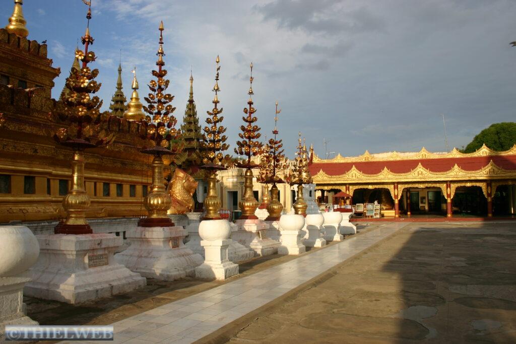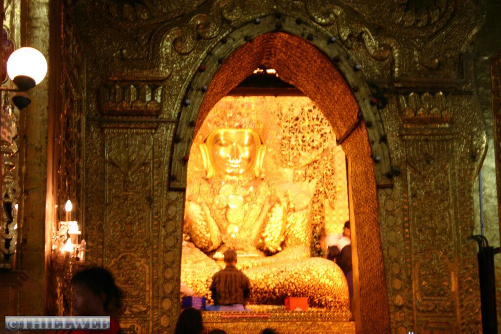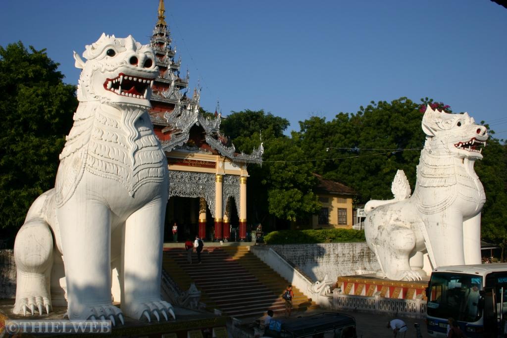 Am elften Tag der Reise verlassen wir Kalaw in Richtung Mandalay. Der Name Mandalay klingt im Ohr eines Europäers verheißungsvoll. Dabei ist die Stadt mit ihren etwas mehr als hundert Jahren noch recht jung. Doch ihre Gründung sucht ihresgleichen: König Mindon war es im Jahre 1857, der die Stadt auf eine Prophezeiung Buddhas hin gründete und sie zum Zentrum der buddhistischen Lehre machen wollte. In weiten Teilen ist ihm dies auch gelungen. So baute er seinen königlichen Palast nach dem Modell der brahmanisch buddhistischen Kosmologie mit gewaltigen Ausmaßen. Heute stehen nur noch seine eindrucksvollen Mauern und ein wunderschöner 70 Meter breiter Wallgraben. In seinem Innern befindet sich ein Fort der myanmarischen Armee.