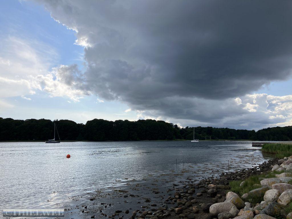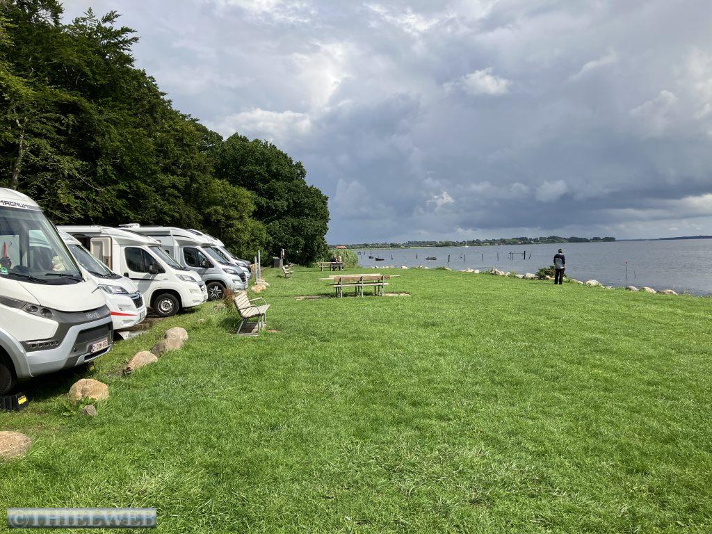 Heute verlassen wir Deutschland, nachdem wir nochmal voll getankt haben. Hinter Flensburg passieren wir die Grenze zu Dänemark. Auf der Autobahn in Richtung gehen immer wieder kräftige Regenschauer nieder. Bei Kolding biegen wir nach Osten ab, überqueren die Nye Lillebæltsbro, eine Hängebrücke, die das Festland mit der drittgrößten Insel des Landes verbindet, und erreichen kurz danach unseren Stellplatz in Middelfart direkt am kleinen Belt. Sonne und dicke Wolken, die sich entladen, lassen uns nur kurze Zeit für eine kleine Runde am Wasser entlang, wo sich Schweinswale tummeln.