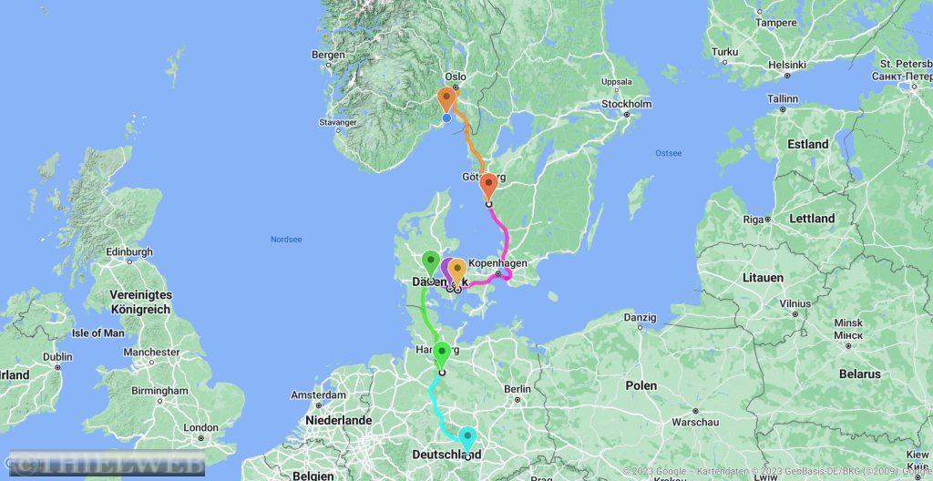 Am Morgen weht ein kräftiger Wind als wir die beeindruckende Storebælt Brücke überfahren. Auf der anderen Seite machen wir einen Fotostopp, bevor unsere Reise über die Insel Seeland “Sjælland” Richtung Kopenhagen weiter geht. Unser Transponter hat funktioniert, und dies an der Schranke durch einen kurzen Pipton angezeigt. Um nach Schweden zu gelangen, fahren wir im Anschluss über die Öresundbrücke, eines der größten technischen Bauwerke Europas, die Kopenhagen mit Malmö verbindet. Um auch von dieser Brücke ein Foto zu machen, biegen wir von der Autobahn ab und nutzten den Stopp auch gleich für unsere Mittagspause. Die Autobahn 20 führt Richtung Norden, ab und zu mit Blick auf den Großen Belt, entlang von Getreide- und Maisfeldern in endloser Abfolge. Keine Ortschaft ist zu sehen in dieser fast ebenen Landschaft. Nach über 400 km erreichen wir Frillesås, wo wir uns für die heutige Nacht einen Stellplatz gesucht haben.