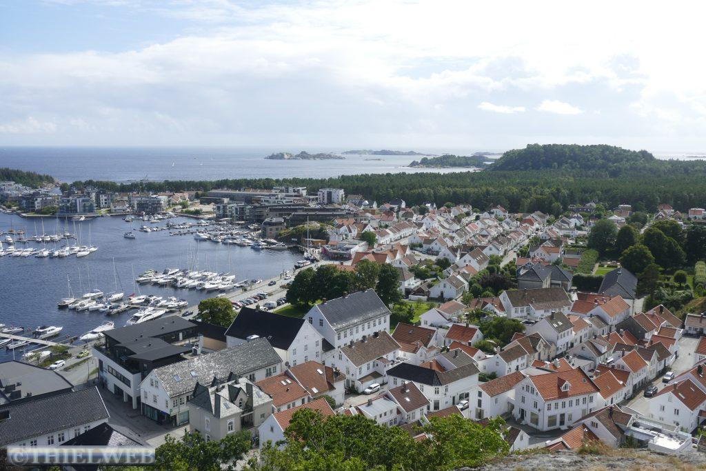 Wir fahren weiter nach Mandal, wo der Mandalfluss ins Meer mündet. Typische alte, weiße Holzhäuser stehen entlang der engen Gassen. Vom Aussichtspunkt Uranienborg blickt man auf ein wunderschönes Panorama.