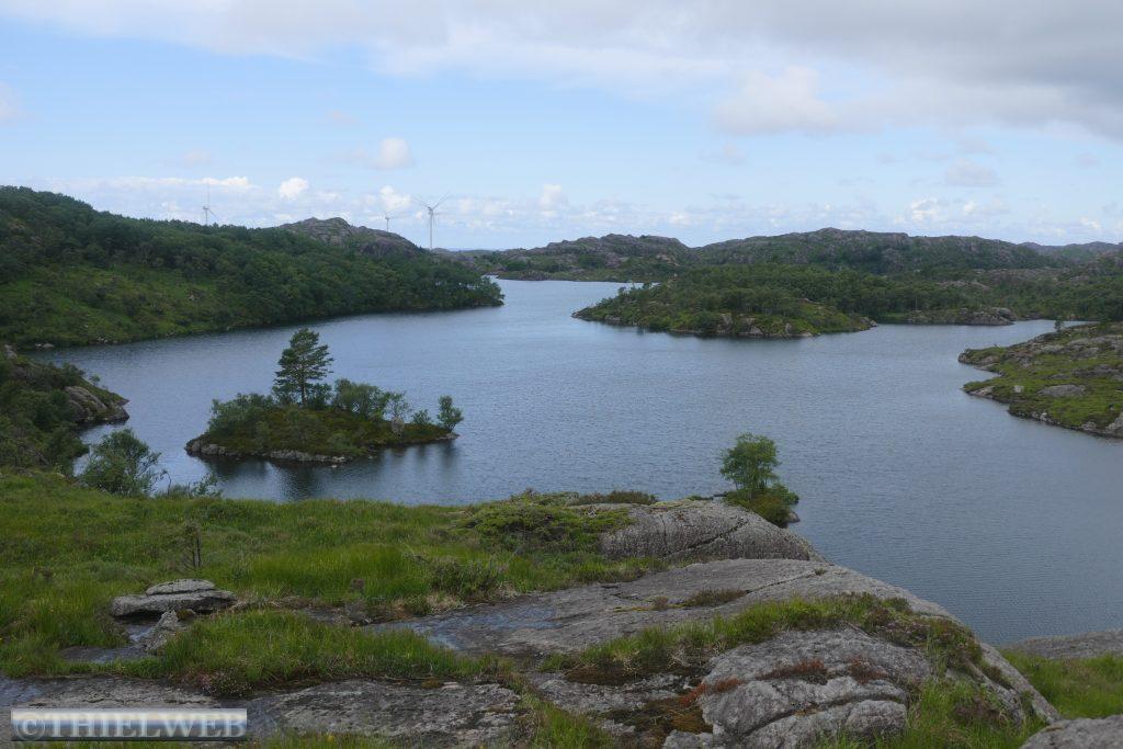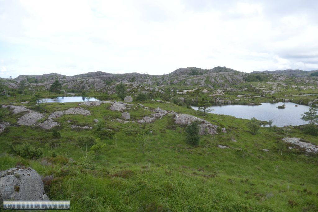 Vor Egersund machen wir heute eine kleine Wanderung im Gebiet am Branndalsvatnet. Durch Heideland, mit alten dichten Wäldern und kleinen Bächen beginnt der Wanderweg zunächst auf einer Schotterstraße. Der Weg führt uns um einen See herum, teils durch Morastiges Gelände, Heidelbeersträucher und immer wieder über Steine mit verschiedenen Aussichtspunkten. Auf der scheinbar höchsten Erhebung ist auf einmal die Markierung verschwunden. Wir suchen ein Weilchen und kehren zur letzten Markierung zurück, als uns ein Ehepaar begegnet und uns den Weg zurück durch ein Tal zum Parkplatz weist.