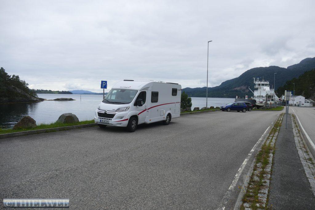 Wieder am Wohnmobil fahren wir weiter in nördliche Richtung bis Strandebarm am Hardangerfjord, wo wir neben der Kirche einen schönen Stellplatz mit Blick auf den Fjord haben.