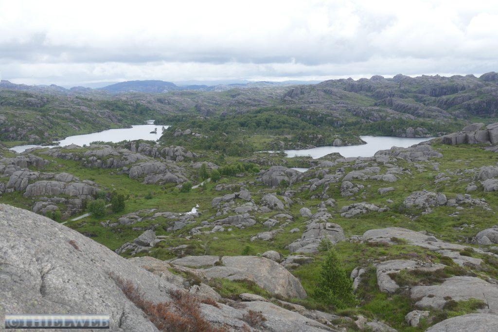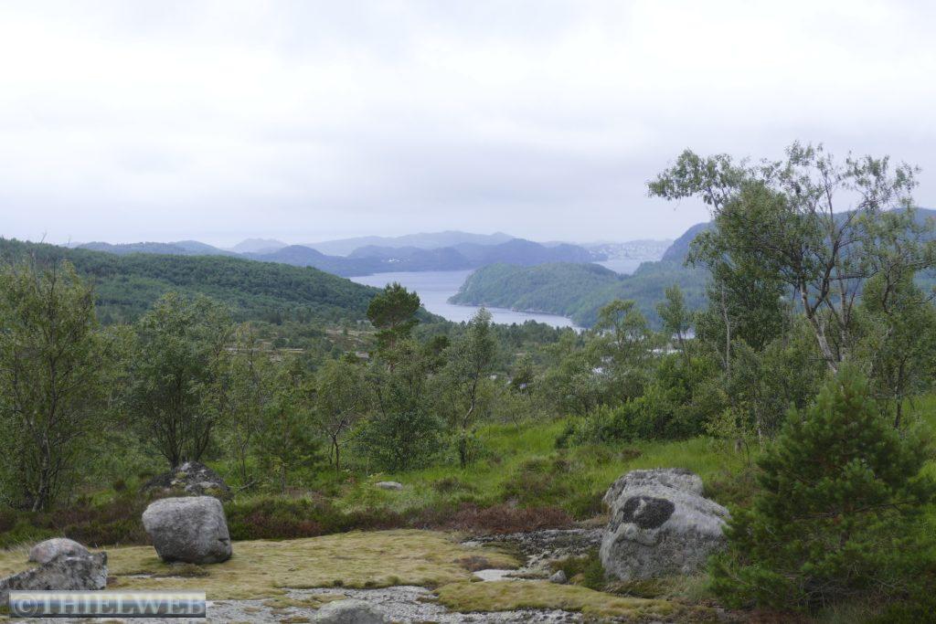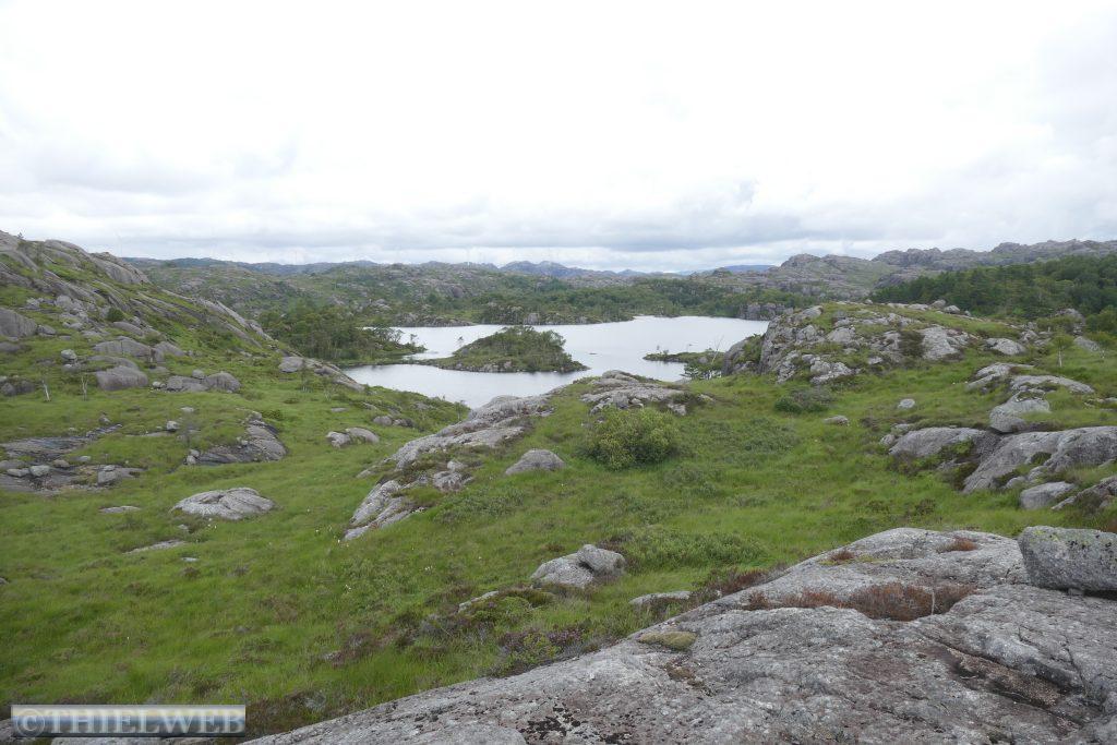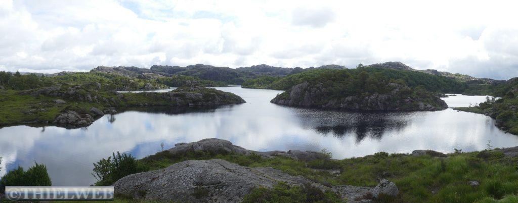 Vor Egersund machen wir heute eine kleine Wanderung im Gebiet am Branndalsvatnet. Durch Heideland, mit alten dichten Wäldern und kleinen Bächen beginnt der Wanderweg zunächst auf einer Schotterstraße. Der Weg führt uns um einen See herum, teils durch Morastiges Gelände, Heidelbeersträucher und immer wieder über Steine mit verschiedenen Aussichtspunkten. Auf der scheinbar höchsten Erhebung ist auf einmal die Markierung verschwunden. Wir suchen ein Weilchen und kehren zur letzten Markierung zurück, als uns ein Ehepaar begegnet und uns den Weg zurück durch ein Tal zum Parkplatz weist.