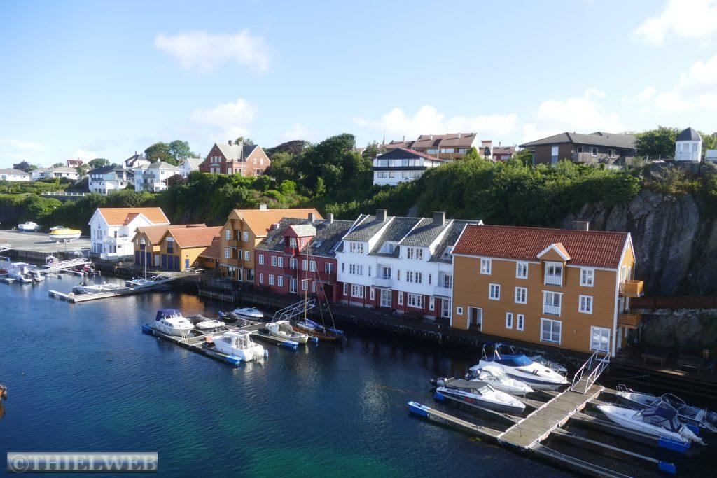 Das Wandergebiet Skrelia ist ein leicht zu erwanderndes Felsterrain mit zahlreichen Gewässern durch Moor und Heide. Herrliche Aussichtspunkte , wie der 359 m hohe Stiheia und der ziemlich lange Wasserfall Skrelifallan, der bis zum Fjord hinabführt, gilt es zu erwandern. Im Anschluss fahren wir zunächst auf einer unbefestigten Straße bis wir die E39 wieder erreichen, der wir bis Flekkefjord folgen. Die wirklich sehr hübsche Stadt war Knotenpunkt für den Holzhandel, besonders mit Holland. Das sehenswerte Stadtviertel Holländerstadt mit schmalen Gassen und einigen gut erhaltenen weißen Holzhäusern erinnern noch an diese Zeit.