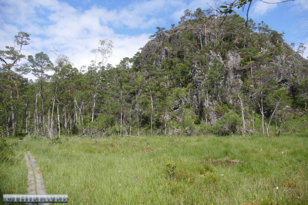 Im Anschluss fahren wir weiter nach Eikeland / Auklandshamn wo wir den 5,2 km langen Wanderweg Storavatnet nehmen. Ein hauptsächlich durch Wald führender Wanderweg, der ab und an über Stege sumpfiges Gebiet überwindet und wir haben einen schönen Blick auf das Wasser und den Bømlafjord.