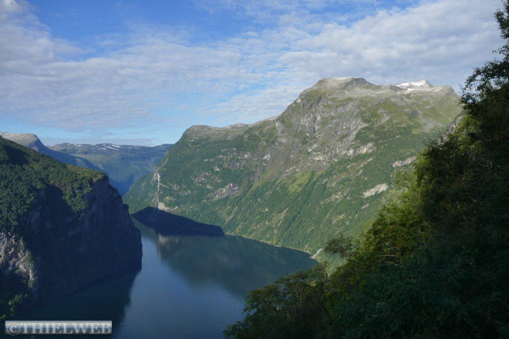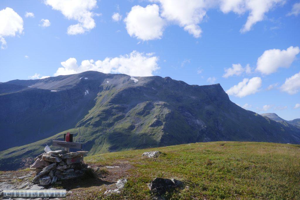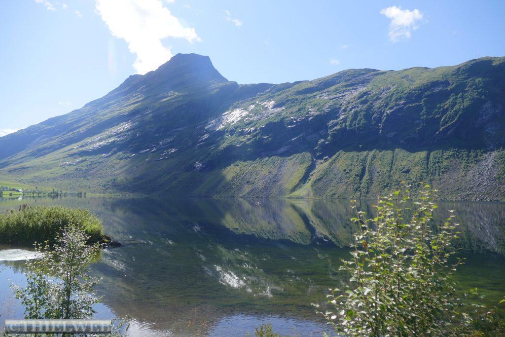 Für die nächsten Tage ist Sonne angesagt. So starten wir zum zweiten Anlauf die traditionsreiche Landschaftsroute Geiranger-Trollstigen zu fahren. Zuerst fahren wir in das lange, schmale Tal Romsdalen, das zu beiden Seiten von majestätischen Gipfeln eingerahmt ist. Mit 1000 Höhenmetern ist der Trollveggen Europas höchste senkrecht und teils überhängende Bergwand. Erster Aussichtspunkt der Landschaftsroute ist der Trollstigen, nachdem wir die 11 Haarnadelkurven hinauf gefahren sind. Mehrere Aussichtspunkte sind über schöne Wege und Treppen zu erreichen. Die größte Aussichtsplattform ragt über eine Kante und schwebt 200 Meter über dem Trollstigen. Hier haben wir eine atemberaubende Aussicht auf den steilen Berghang mit den Serpentinen. Der Fluss Valldøla hat in tausenden von Jahren tiefe Gletschertöpfe und raffinierte Bergformationen entstehen lassen. Die Aussichtsplattform gläserne Gudbrandsjuvet ist wie ein Kranz geformt und liegt idyllisch im Tal Valldalen. Wir können in die teilweise 5 m breite und bis zu 25 m tiefe Schlucht schauen. Dann erreichen wir den Fähranleger Linge, wo wir die Fähre über den Norddalsfjord nach Eidsdal nehmen. Wir klettern wieder auf 600 Höhenmeter und nehmen den Parkplatz Korsmyra. Hier sind mehrere Wanderrouten ausgeschildert. Wir entscheiden uns für die 3,5 km lange Hesjedalshaugen, die auf 1013 m hoch klettert. Zuerst auf einem befestigten breiten Weg, der uns in das Tal hinein bringt, biegen wir nach ca. 2 km links auf einen schmalen Pfad ab. Ab hier wird es stetig steiler, doch der Weg ist gut zu finden und quert ein paar schmale Bäche. Auf dem Gipfel angekommen, haben wir eine schöne Aussicht auf Indreeidsdalen und Eidsvatnet. Zurück nehmen wir den gleichen Weg und schauen dabei in Richtung des 1829 m hohen Fremste-Skorene. Da wir auf dem Parkplatz Korsmyra nicht übernachten dürfen, fahren wir ca. 200 m zurück und haben Glück, dass der kleine Parkplatz noch frei ist.