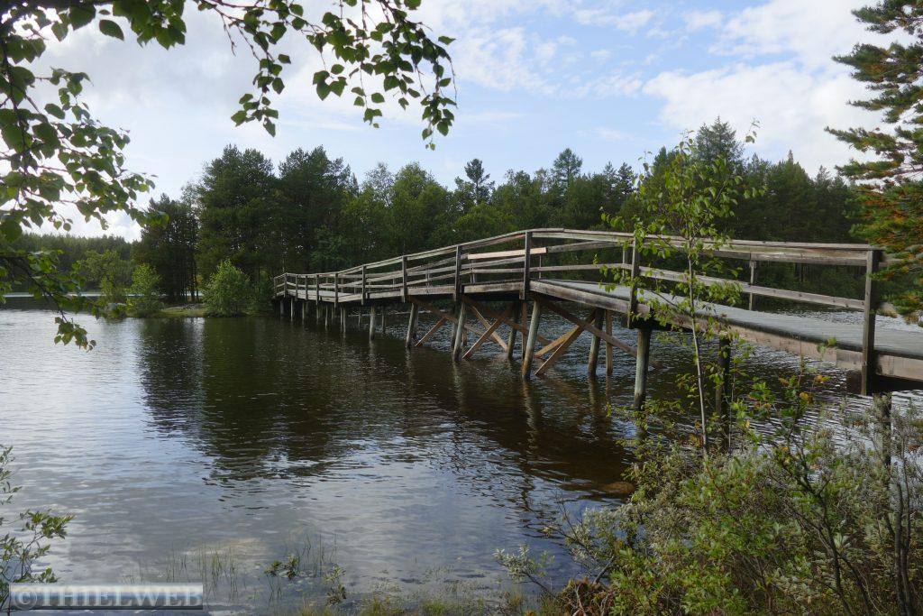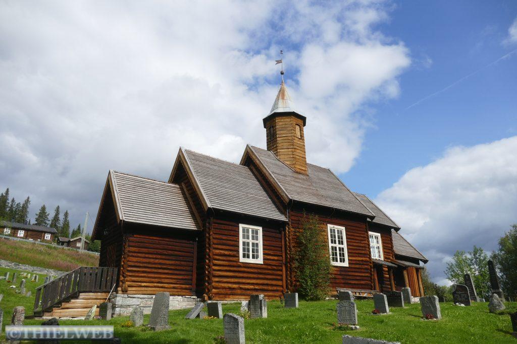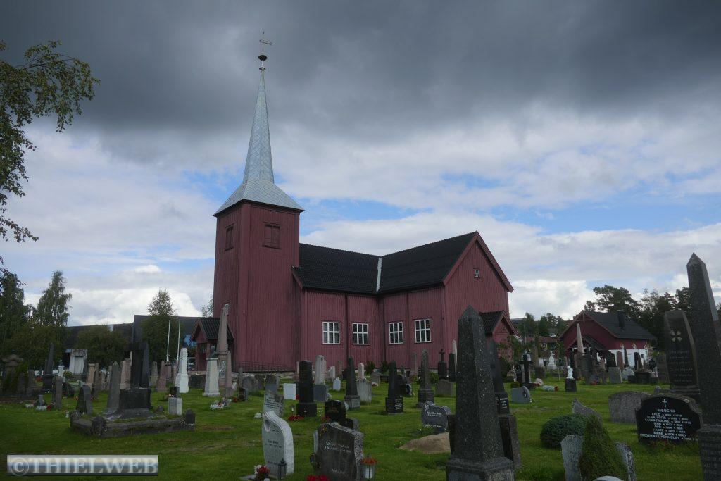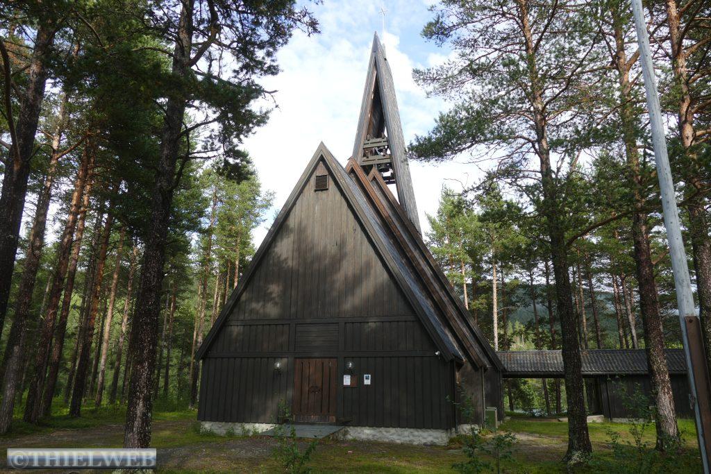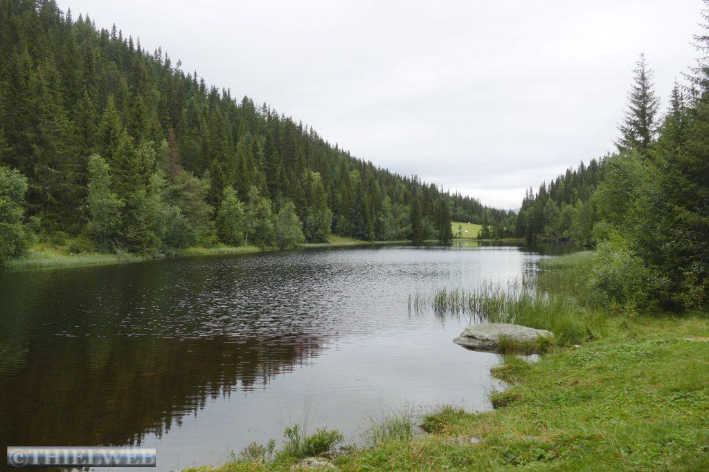 Am Abend fängt es an zu regnen. Das hält auch noch bis in den heutigen Tag an. Wir spielen die Möglichkeiten, wie wir weiter fahren, durch. Guter Rat ist teuer, da auch für die nächsten Tage keine wirkliche Besserung angesagt ist. Die Landschaftsroute Rondane, die auf über 1000 Höhenmeter ansteigt und Aussicht auf die 2000 m hohen Berge bietet, macht keinen Sinn. Wir entscheiden uns am späten Vormittag die E6 bis Vinstra und dann weiter auf der 255 nach Espedalen zu fahren. Bei den Verkehrsmeldungen gibt es zwar auf der 255 eine Warnung, dass durch Steinschlag die Fahrspuren gesperrt sind, doch wir versuchen es. Elgland im Espedalen ist das Reich der Elche. Seit tausenden Jahren ziehen hier die Elche im Herbst hinauf in die Berge, um im darauffolgenden Frühjahr in das Tal zurückzukehren. Es soll noch so viel Elche geben, dass eine Begegnung unausweichlich ist. Wir sind gespannt, machen uns jedoch wenig Hoffnung auf die Chance im Reich der Elche den König des Waldes zu sehen. Auf der Fahrt kommen wir durch Skåbu, dem am höchsten gelegenen Dorf Norwegens auf 870 m Höhe. Einen Stellplatz finden wir zwischen den beiden Seen Breisjøen und Valdesjenna. Am Nachmittag klart es dann doch endlich auf, sodass wir eine kleine Wanderung machen können. Sie beginnt aufsteigend auf einer Forststraße und biegt dann rechts auf einen schmalen Pfad ab. Nach 3 km stehen wir vor einer recht verfallenen Brücke. Dahinter eine Sumpf. Wir kehren um und umrunden noch den See Breisjøen. Dabei kommen wir an der Espedalen fjellkirke vorbei. Einen Elch haben wir nicht gesehen 🙁