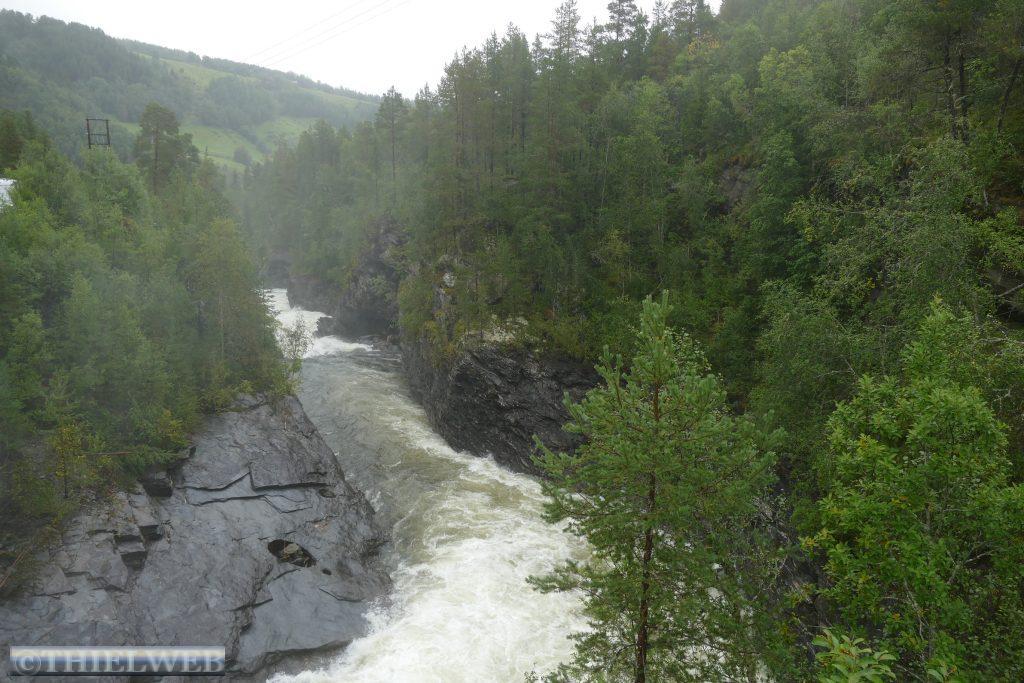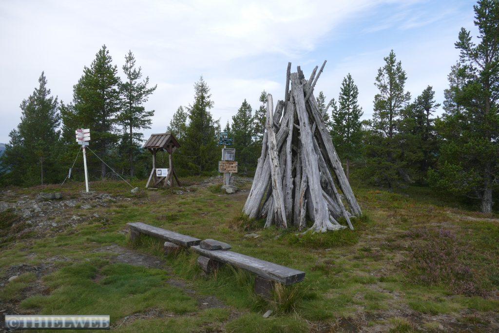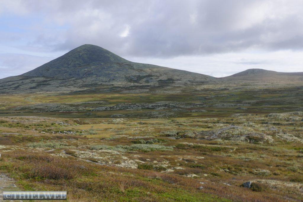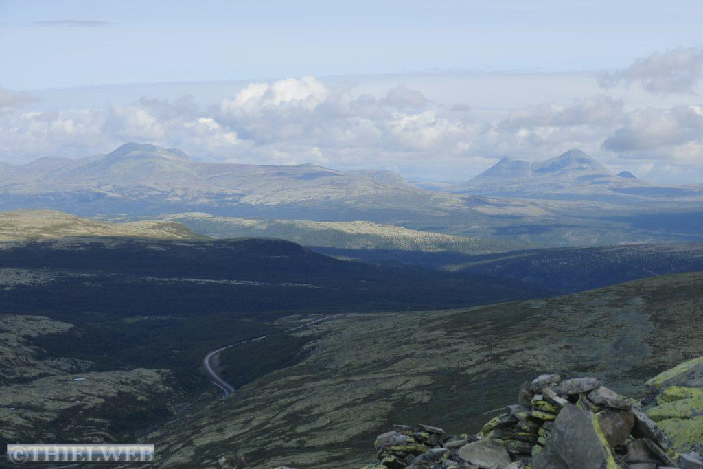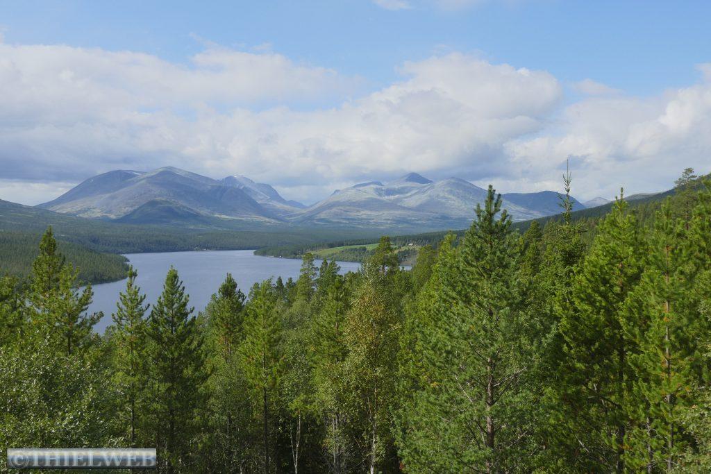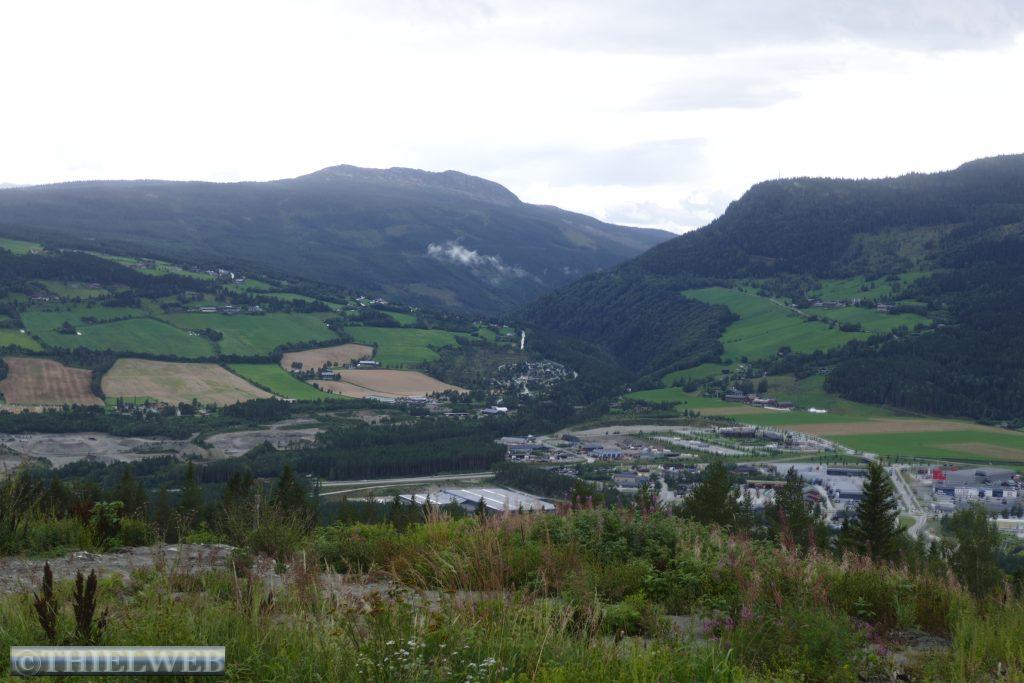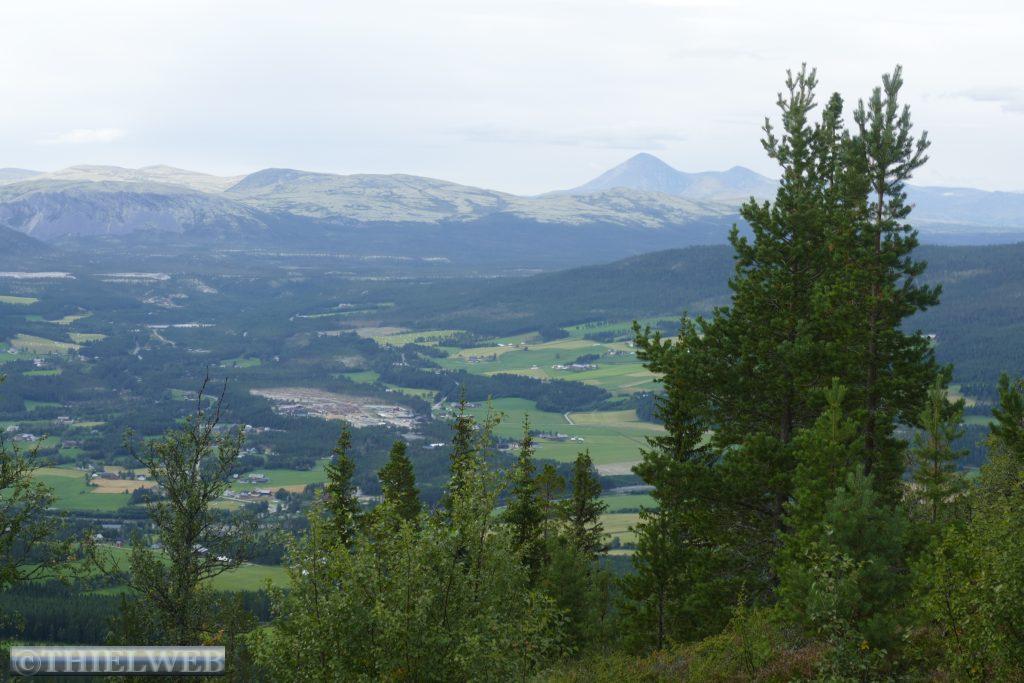 Wir verlassen unseren schönen Übernachtungsplatz, um nur wenige Kilometer weiter eine Wanderung auf den 905 m hohen Sten zu unternehmen. Am Sportpark ist ein Wanderschild und wir laufen zuerst bis zu einer Wohnsiedlung. Hier suchen wir den Einstieg für den Aufstieg auf den Berg. Als wir schon fast wieder umkehren wollen, sehen wir eine Frau und fragen nach dem Weg, den sie uns beschreibt. Da uns dies doch nicht so richtig erscheint, gehen wir ein Stück zurück und fragen erneut. Die Frau bringt uns zum gleichen Einstieg auf den Sten. Ein kleiner Wiesenweg mündet in eine Abholzungsfläche, wo wir den Weg erneut suchen, bis wir ein Wanderschild sehen. Ab hier ist der Waldweg sehr gut ausgeschildert. Das letzte Wegstück ist wirklich steil über einen langen Hügel hinauf zum Gipfel. Die Mühe hat sich gelohnt. Die Aussicht ist in alle Richtungen phänomenal. In den Tälern hängt noch der Nebel doch wir sehen im Norden den Tynset, im Süden Alvdal Zentrum, im Westen Alvdal Vestfjell und im Osten Tronden (1666 m über dem Meeresspiegel). Beim Abstieg naschen wir von den vielen Blaubeeren. Wir befinden uns auf der Weiterfahrt auf der Rv 3. Am Hinweisschild Jutulhogget parken wir und laufen ca. einen halben Kilometer zum Aussichtspunkt in Nord-Europas größten Canyon, der während der letzten Eiszeit vor etwa 10000 Jahren entstand. Die Schlucht ist 2,4 km lang und bis zu 240 m tief. Danach fahren wir weiter bis zum Rastplatz Stor-Elvdal. Hier steht die weltweit größte Elch-Skulptur mit 10,1 m Höhe. Die imposante polierte stählerne Elch-Statue soll die Aufmerksamkeit der Autofahrer schärfen, um das Unfallrisiko auf der Strecke und die Zahl der Wildunfälle zu reduzieren. Den Übernachtungsplatz haben wir heute bei Tryvang.