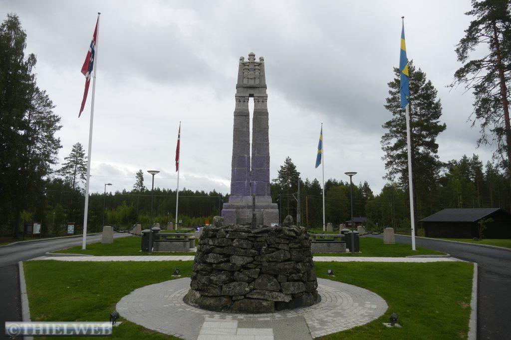 In der Nacht: Regen, am Morgen bis zum Nachmittag: Regen. Wir fahren weiter auf der Rv2 Richtung Süden und erledigen unterwegs die gewohnten Dinge. In Kongsvinger wollen wir als Zwischenstopp zur Festung. Doch da es immer noch schüttet, gehen wir nur durch das Einkaufszentrum. Nach ca. 130 km erreichen wir unseren Stellplatz in Magnor, an der Grenze zu Schweden. Auf der gegenüberliegenden Seite des Parkplatzes befindet sich das 1914 errichtete Friedensmonument zum Gedenken an den 100-jährigen Frieden zwischen Schweden und Norwegen.
