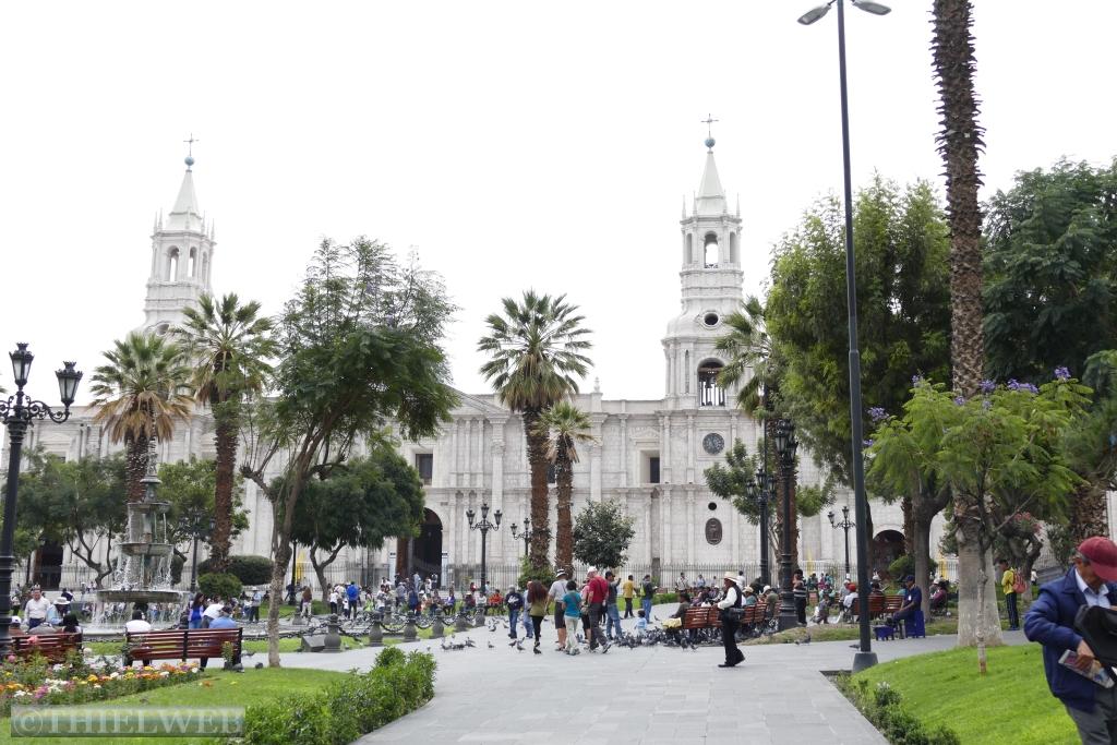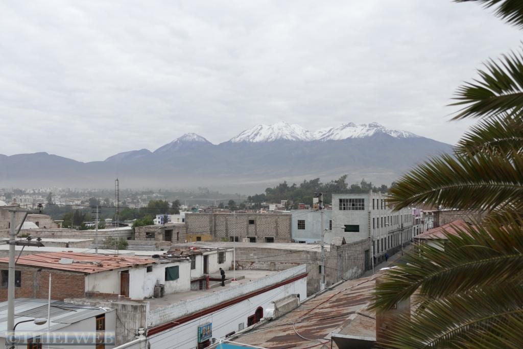 Weiter geht es nach Camana, einem Urlaubsressort für die Bewohner von Arequipa, von wo aus wir ins Landesinnere fahren und bereits in der Ferne die Spitzen der Vulkane von Arequipa vor uns sehen können: Chachani (6.075 m), Misti (5822 m) (5.675 m) und Pichu Pichu. Arequipa (2.300 m) ist auch als die „Weiße Stadt“ bekannt, da die Häuser im Zentrum rund um den Plaza de Armas aus Sillar, einem weißen Vulkangestein gebaut sind.