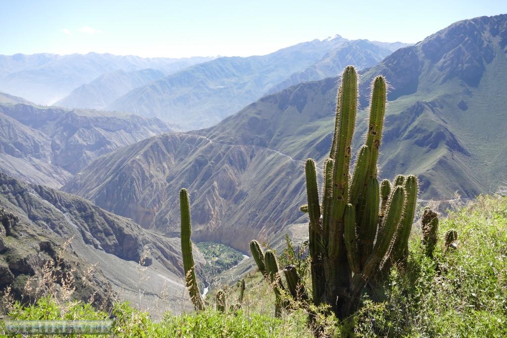 Über Chivay (3.650 m), wo die Luft schon wieder ‚dicker‘ ist, erreichen wir das ursprüngliche Dorf Cabanaconde (3.300 m). In der Nähe von Cabanaconde steigen wir in den Colca Canyon hinab. Ungefähr drei Stunden geht es immer weiter hinunter ins Colca-Tal. Die Wanderung ist auf dem Schotterweg ein wenig anstrengend.