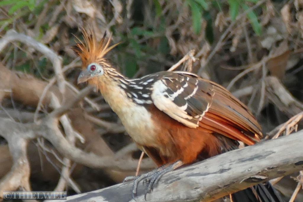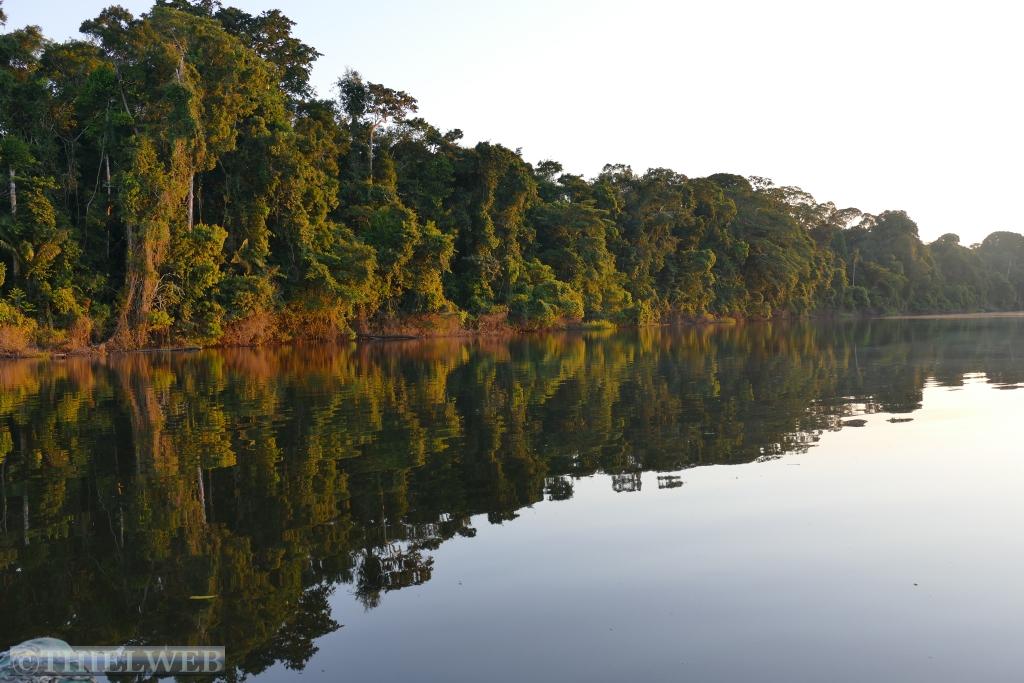 Heute ist unser erster Dschungeltag mit Exkursionen. Noch vor dem Frühstück machen wir mit dem Boot einen Ausflug zu einer Salz Lecke, dabei handelt es sich um mineralreiche Erde, die die Papageien als nährwertreiches Futter mögen. Aras, Papageien und Sittiche können wir beobachten. Auf dem Rückweg können wir Wasserschweine am Ufer beobachten. Nach dem Frühstück bringt uns ein Boot ein wenig flussabwärts, zu Fuß wandern wir dann weiter zum See „Tres Chimbadas“.