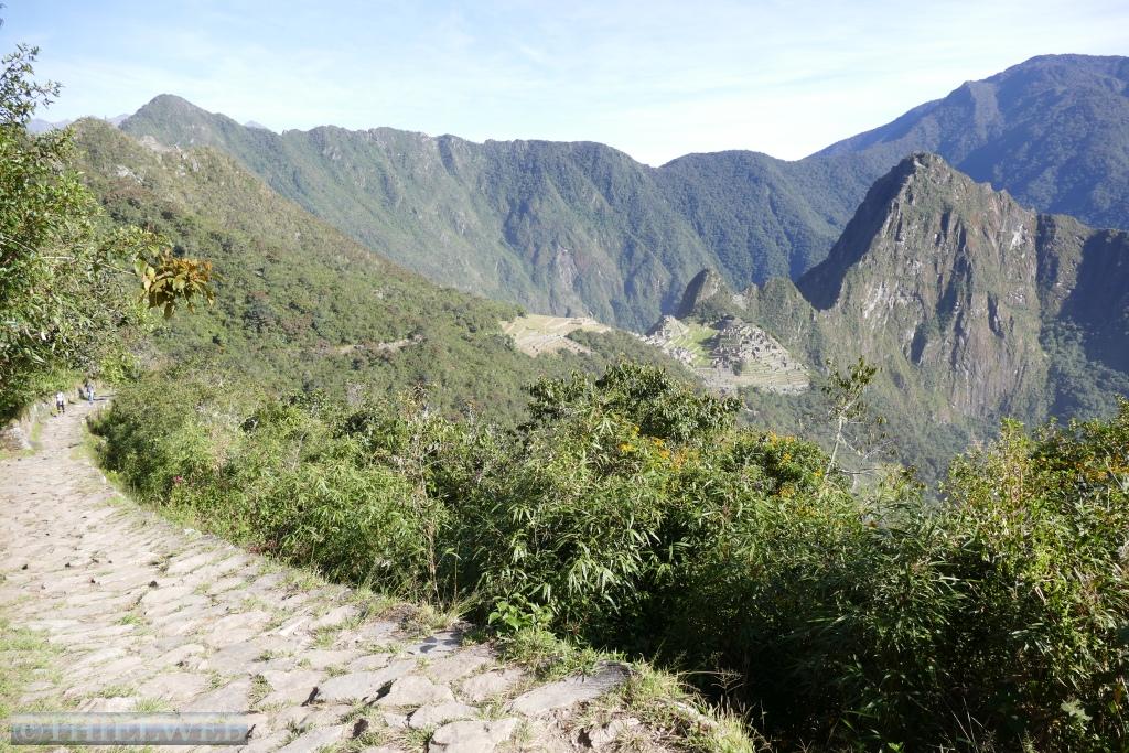 Wir müssen uns eine wenig sputen da wir um 10 Uhr den Aufstieg auf den Huayna Piccu zugeteilt bekommen haben. Die mittlerweile brennende Sonne und die Höhe macht sich in unseren Beinen bemerkbar und uns kommen Zweifel, ob wir wirklich den Aufstieg auf den Huayna Piccu schaffen. Nach einem ersten Rundgang durch die Ruinen beginnen wir über steile unregelmäßige Stufen den Aufstieg auf den Huayna Piccu. Immer weiter geht es hinauf, die Puste wird aufgrund der dünnen Luft knapp, doch dann sind wir oben. Ein fantastischer Blick bietet sich zu unseren Füßen, doch leider können wir ihn nur kurz genießen.