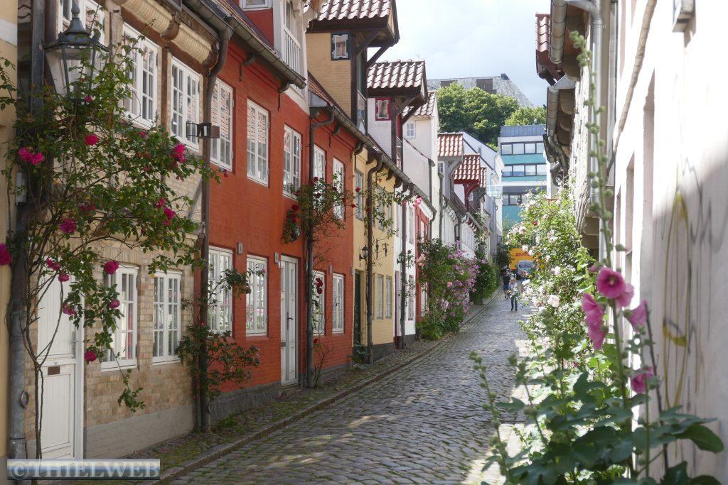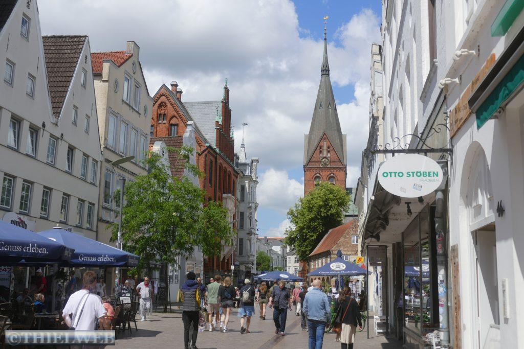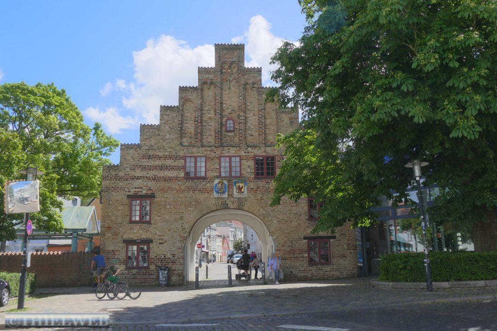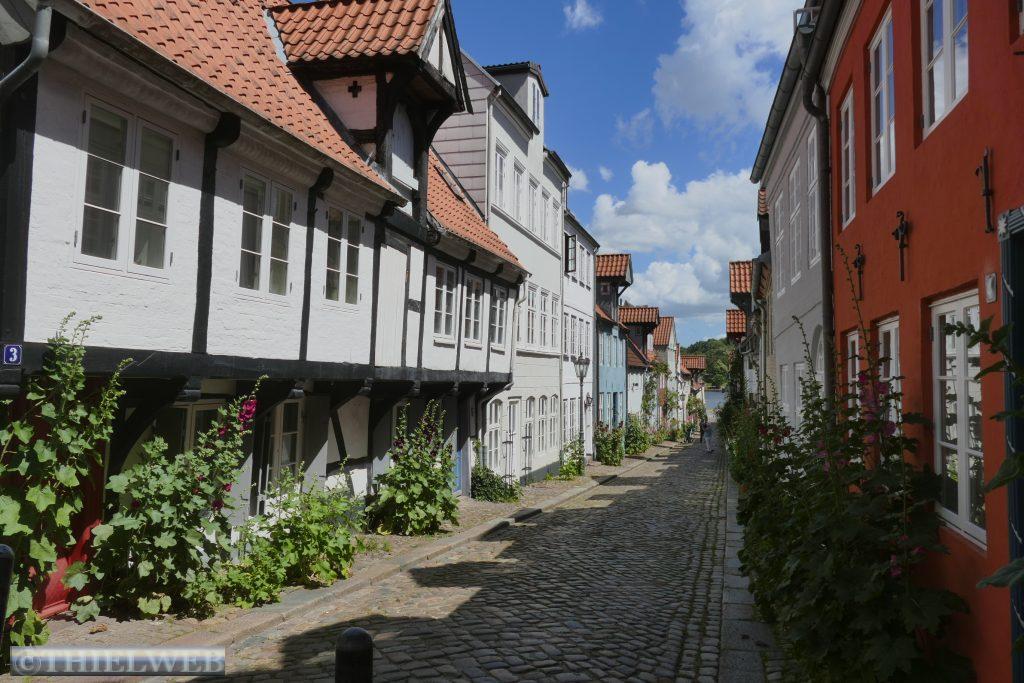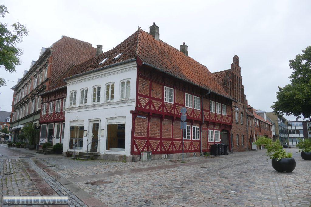 Vom Gewitter sind wir gestern zum Glück verschont geblieben. Unsere heutige Tour ist nicht so weit. Wir fahren bis Flensburg, nachdem wir endlich in Winsen AdBlue auftanken konnten. In Flensburg stehen wir direkt am Hafen und laufen in die Altstadt. Mit einem Stadtplan versorgt beginnen wir am Südmarkt mit der Nikolai-Kirche und gehen in die Rote Straße, die durch ihre sechs malerischen Höfe beeindruckt. Der Zweite Weltkrieg hat Flensburg kaum zerstört. So blieben die traditionsreichen Kaufmannshöfe sowie die Backsteingebäude der hübschen Altstadt erhalten. Durch die Fußgängerzone gehen wir dann bis zum 400 Jahre alten Steintor und werfen unterwegs einen Blick in die mit Fischerhäuschen geprägte Gasse Oluf-Samsung-Gang.