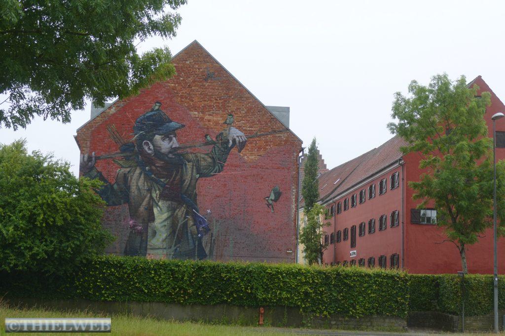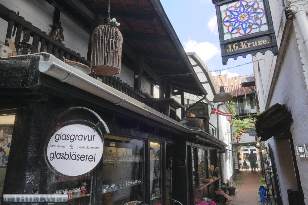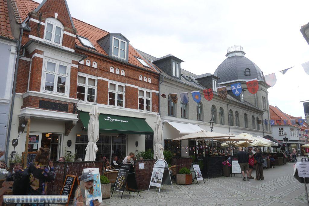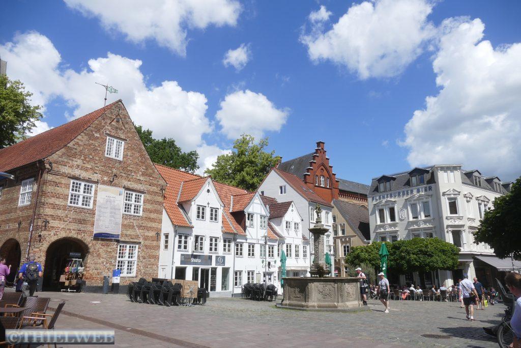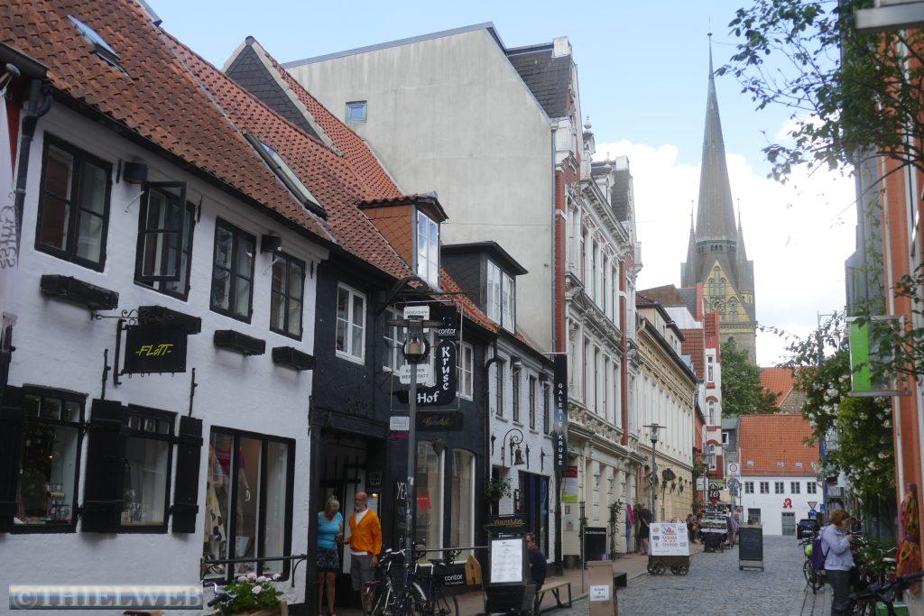 Vom Gewitter sind wir gestern zum Glück verschont geblieben. Unsere heutige Tour ist nicht so weit. Wir fahren bis Flensburg, nachdem wir endlich in Winsen AdBlue auftanken konnten. In Flensburg stehen wir direkt am Hafen und laufen in die Altstadt. Mit einem Stadtplan versorgt beginnen wir am Südmarkt mit der Nikolai-Kirche und gehen in die Rote Straße, die durch ihre sechs malerischen Höfe beeindruckt. Der Zweite Weltkrieg hat Flensburg kaum zerstört. So blieben die traditionsreichen Kaufmannshöfe sowie die Backsteingebäude der hübschen Altstadt erhalten. Durch die Fußgängerzone gehen wir dann bis zum 400 Jahre alten Steintor und werfen unterwegs einen Blick in die mit Fischerhäuschen geprägte Gasse Oluf-Samsung-Gang.