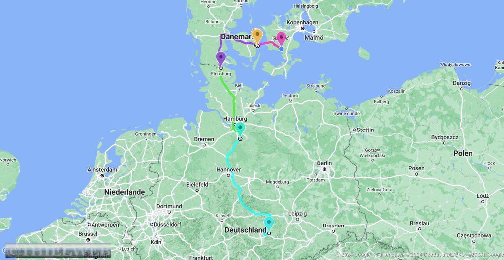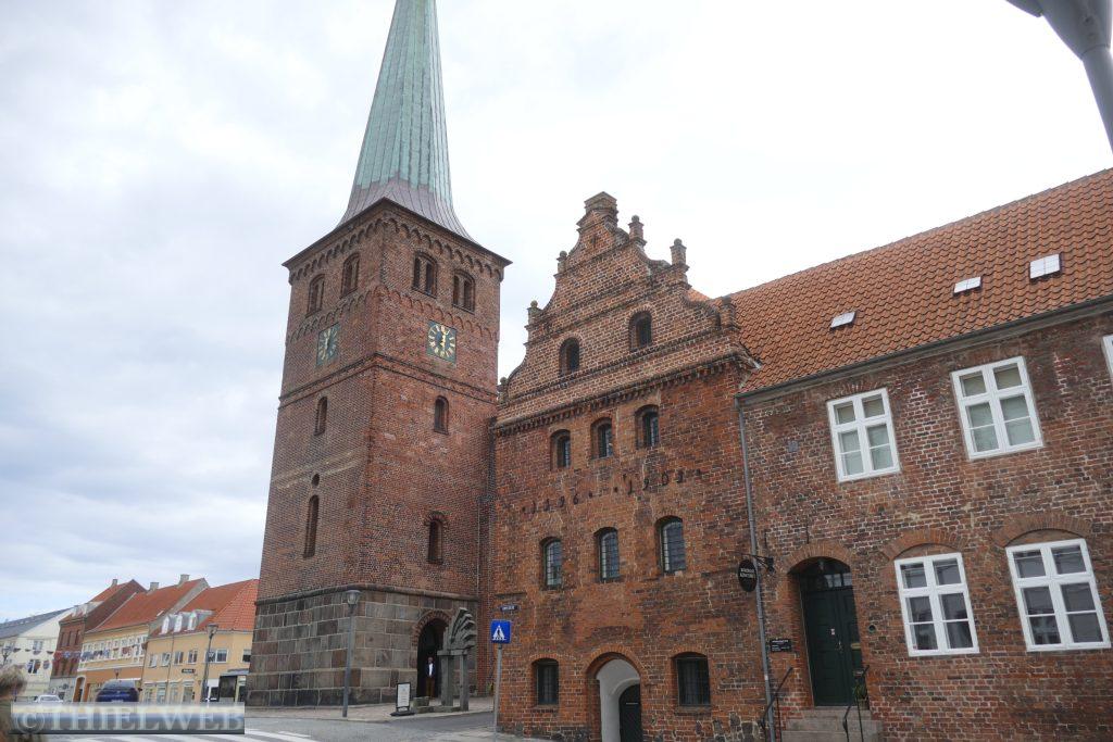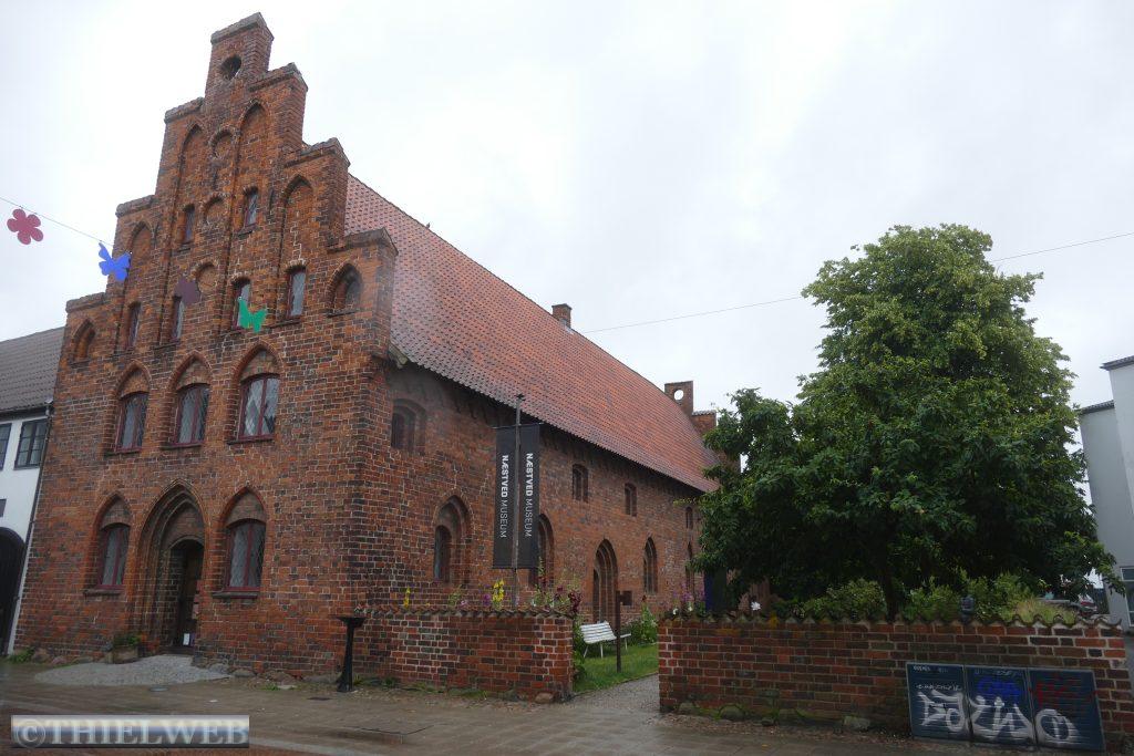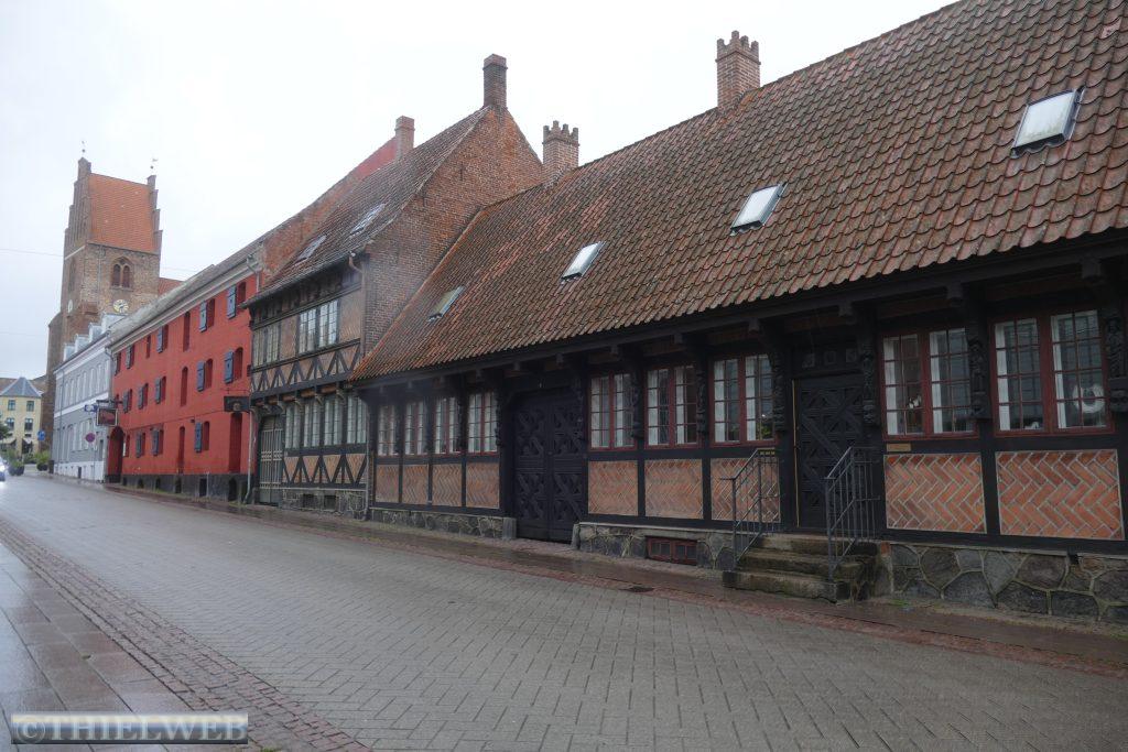 Schon in der Nacht hat es begonnen zu regnen. Erster Anlaufpunkt ist noch die Entsorgung bevor wir über die Storebælt Brücke über den Großen Belt fahren. Der zweite Teil der Storebælt Brücke ist die längste Hängebrücke Europas und die drittlängste der Welt. Viel sehen wir bei dem Regen leider nicht. Auf der Insel Seeland verlassen wir die E20 und biegen ab nach Næstved. Als der Regen endlich etwas nachlässt, sehen wir uns die Stadt mit den schönen Fassadenbildern an. Bedeutend ist die 55 m lange gotische Kirche St. Peter, die alten Bürgerhäuser, das Apostelhaus und der Heiliggeiststift sowie das hanseatische Kompagniehaus aus dem 14. Jahrhundert.
