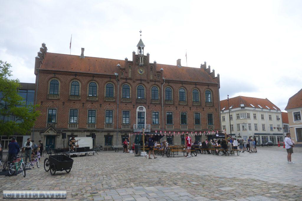 Entsorgen und Tanken, dann geht es weiter nach Dänemark. Offenbar sind alle Dänen heute auf den Straßen. Auf der Autobahn in der Gegenrichtung ist sogar Stau. Gegen Mittag erreichen wir Nyborg und finden einen Parkplatz ganz in der Nähe vom historischen Zentrum. Wir laufen durch die Fußgängerzone zur Kirche unserer lieben Frau und zur Bastionen, dem Theater. Als wir am Markt mit dem Rathaus ins Touristenbüro gehen, stellen wir fest, dass wir hier schon einmal waren. Somit frischen wir die Erinnerungen bei einem Spaziergang von Landporten über den Festungswall zum Wasserturm, am Schloss vorbei bis zum Bürgermeisterhof wieder auf. Anschließend fahren wir in Richtung der Storebæltsbroen. Der Parkplatz an der Shell Tankstelle gefällt uns nicht und so suchen wir den kleinen Parkplatz mit direktem Blick auf die Brücke, wo wir im letzten Jahr waren, für die Übernachtung auf.
