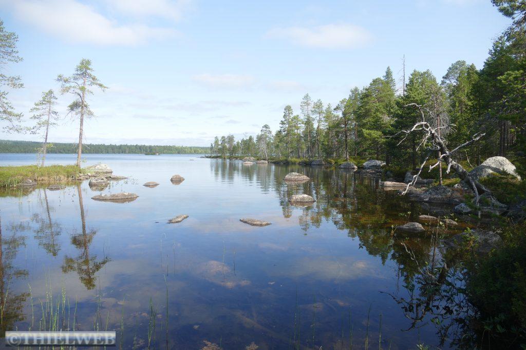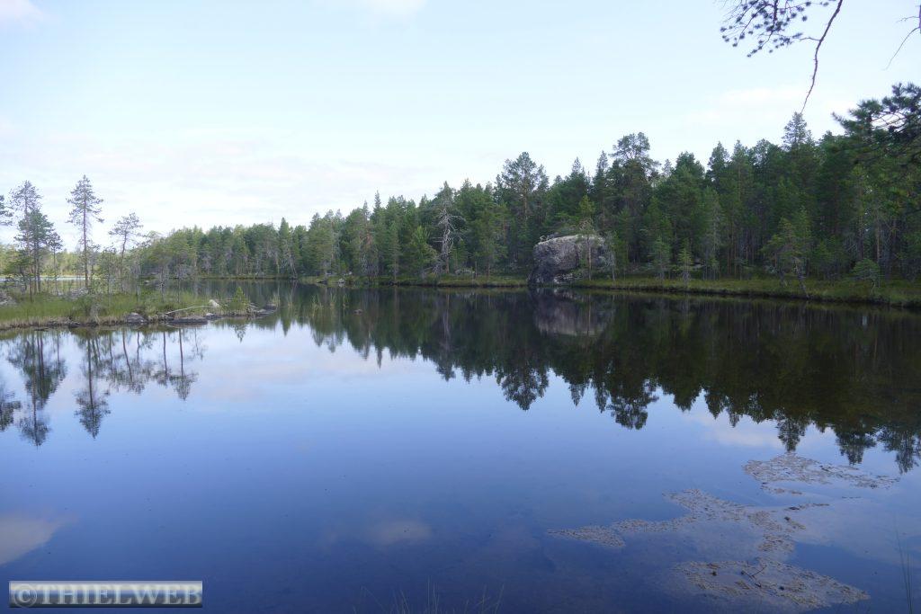 Nach dem gestrigen langen Fahrtag wollen wir heute eine kleine Wanderung durch die sagenhafte nordfinnische Natur zur Pielpajarvi Wildniskirche machen. Sie ist eine ganz besondere Kirche, die 1760 auf dem ursprünglichen Winterdorf der halbnomadischen Samen errichtet wurde. Ein gut markierter Wanderweg über Wurzeln und Steine, an Seen vorbei über Stege und eine Brücke führt zur kleinen Holzkirche.