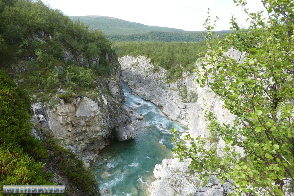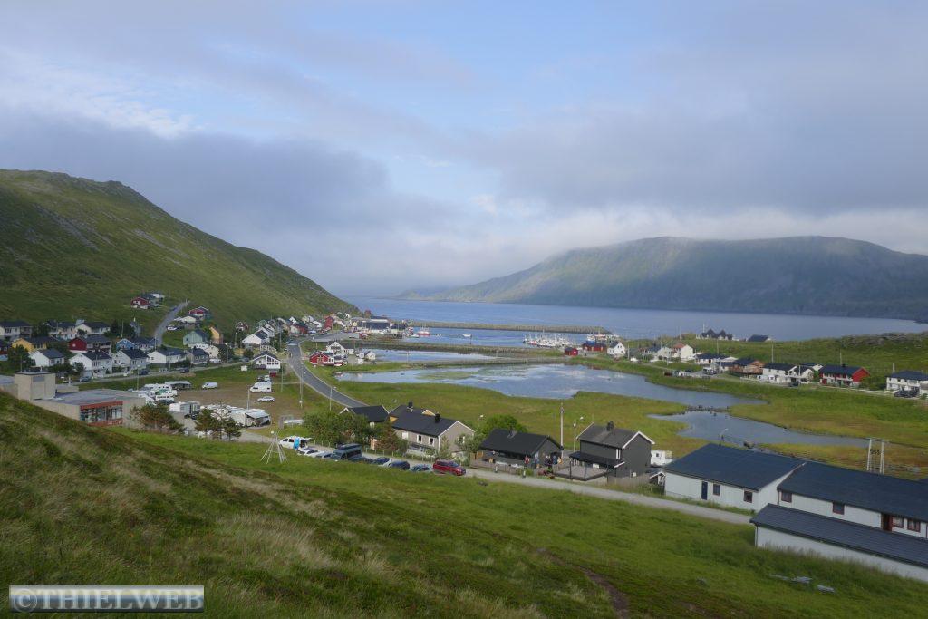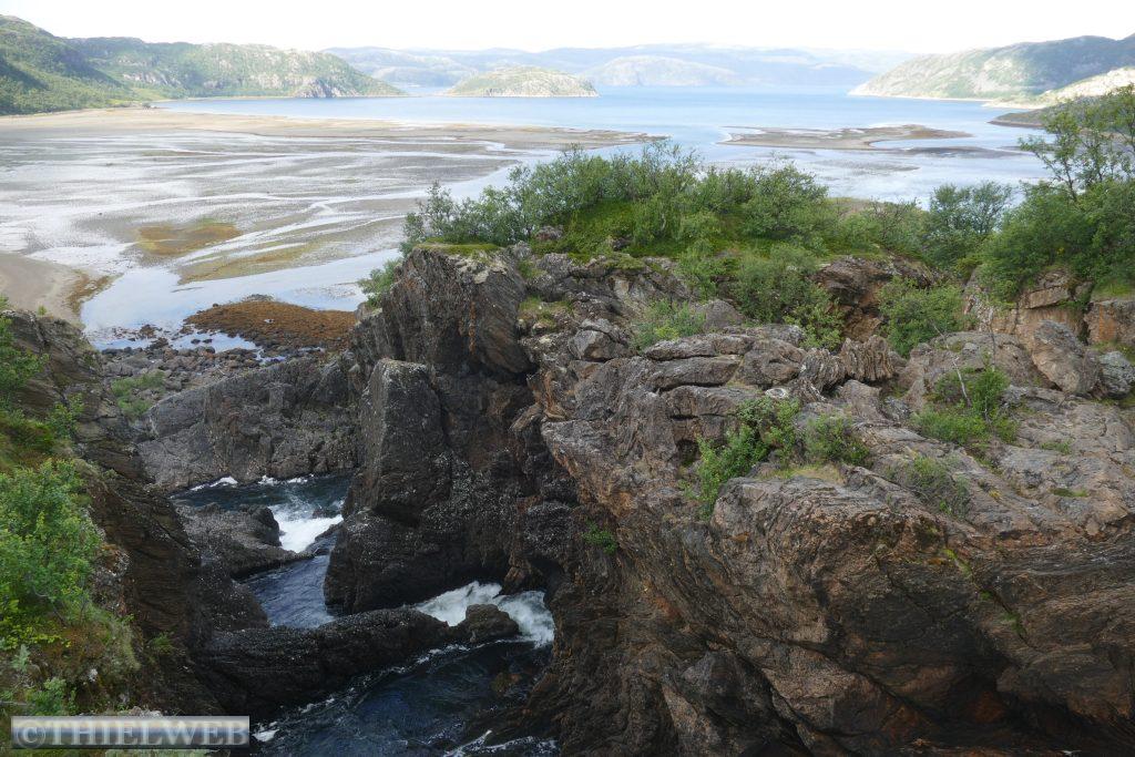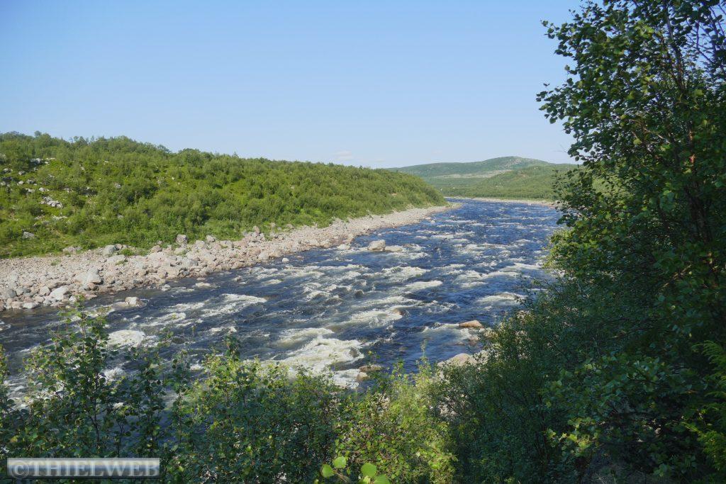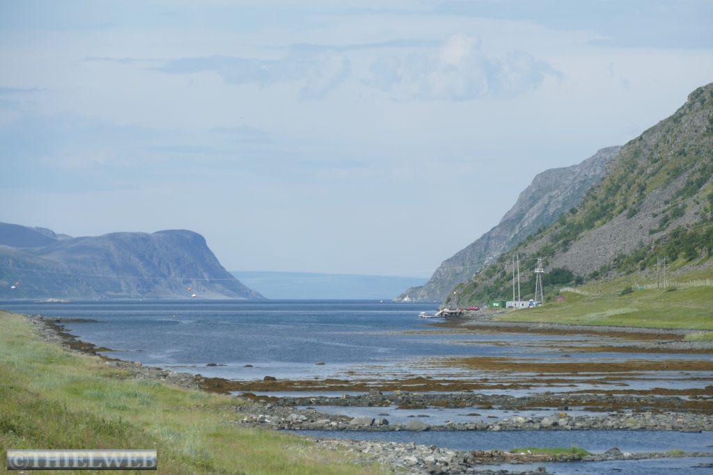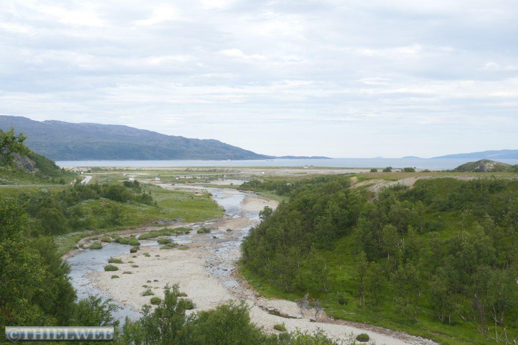 Die Nacht war entsprechend kurz, als wir die Fahrt auf der 888 zurück nach Ifjord zum Entsorgen fortsetzen. Unterwegs machen wir einen kurzen Halt in Gamvik. Es sind bereits 28° C. Über Ifjord fahren wir dann auf der FV98 weiter bis Bjørselv und sehen uns unterwegs das beeindruckende Adamselv Flussdelta an. Die Temperatur ist mittlerweile drastisch auf 20° gefallen. Wenige Kilometer weiter kommen wir zum imposanten Silfar Canyon, den wir uns natürlich ansehen. Wir folgen dem kleinen Pfad, der an verschiedenen Stellen den Blick auf das tosende Wasser des Børselva freigibt. In Lakselv tanken wir recht teuer auf und kaufen nochmal ein, bevor wir auf der Europastraße E6 am Ufer des Porsangerfjord in Richtung Nordkap fahren. Einen Parkplatz mit Blick auf den Fjord wählen wir für die Nacht.