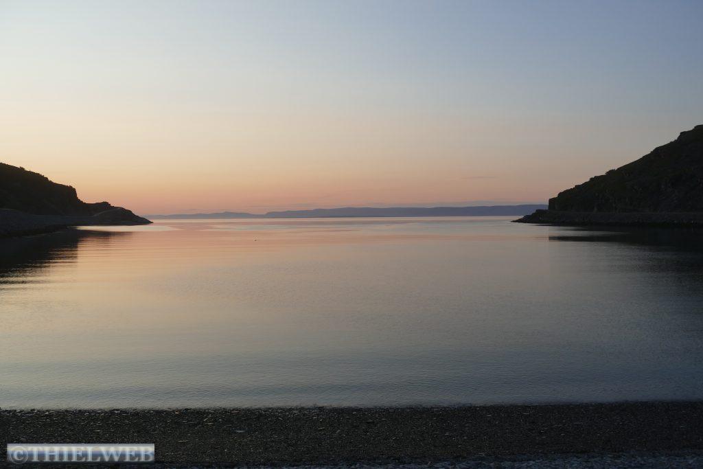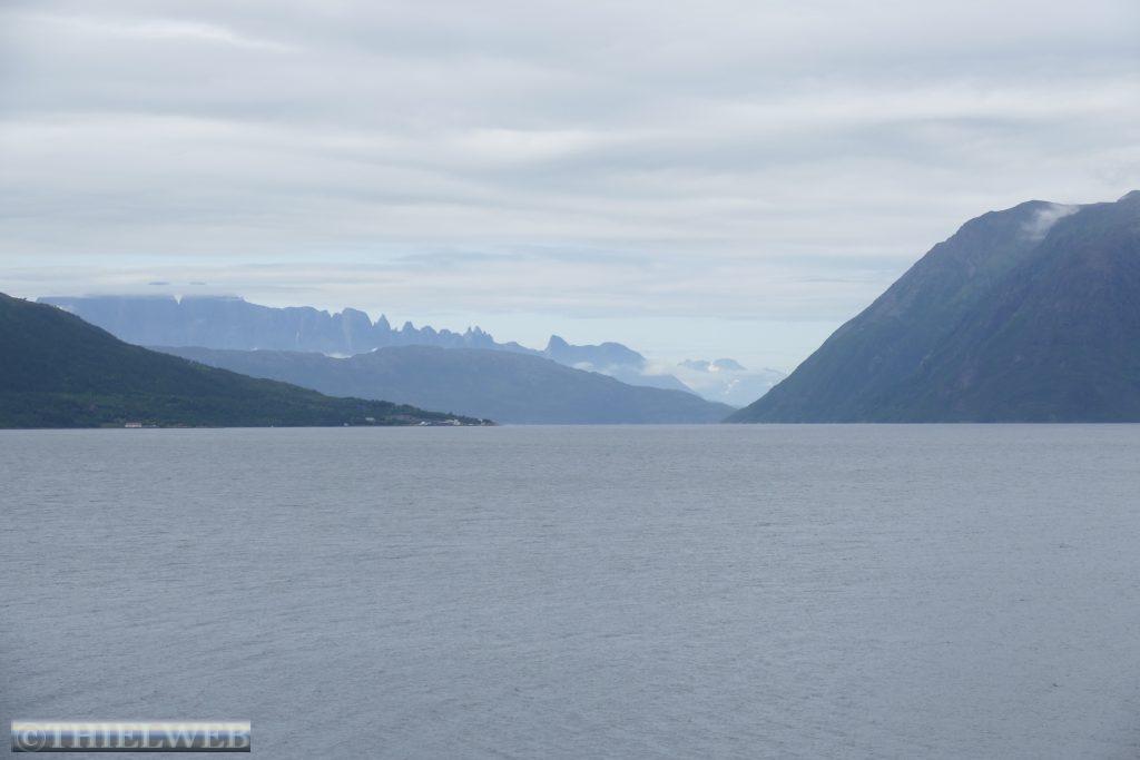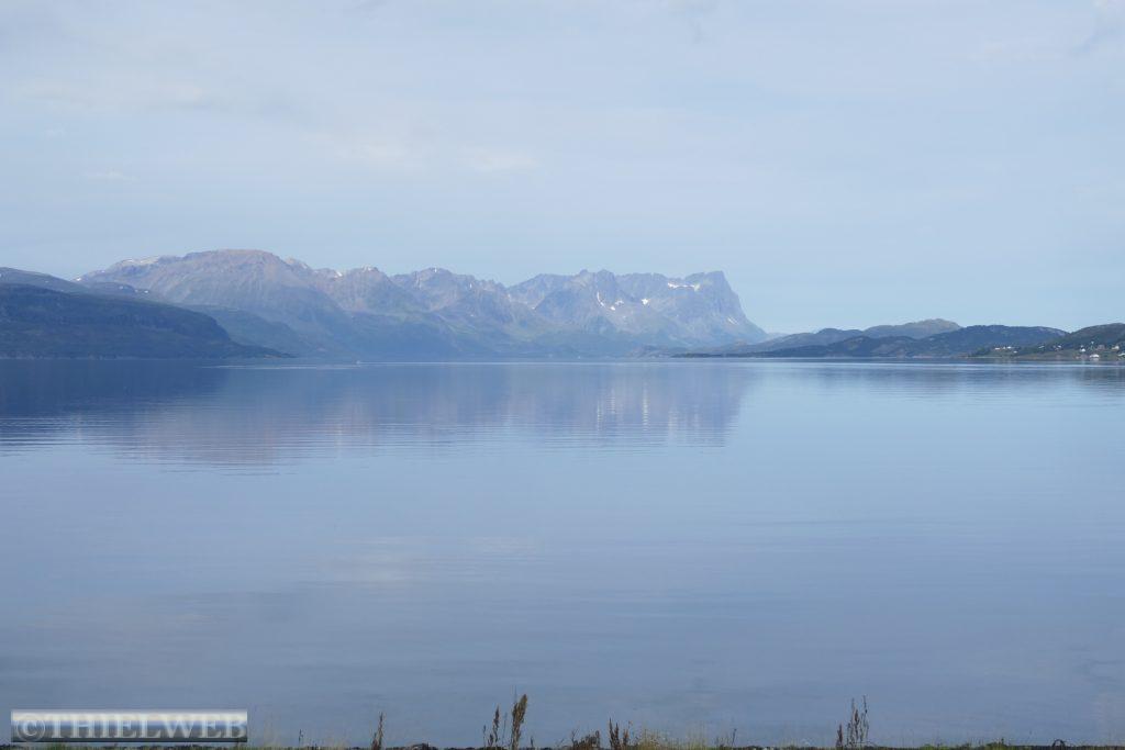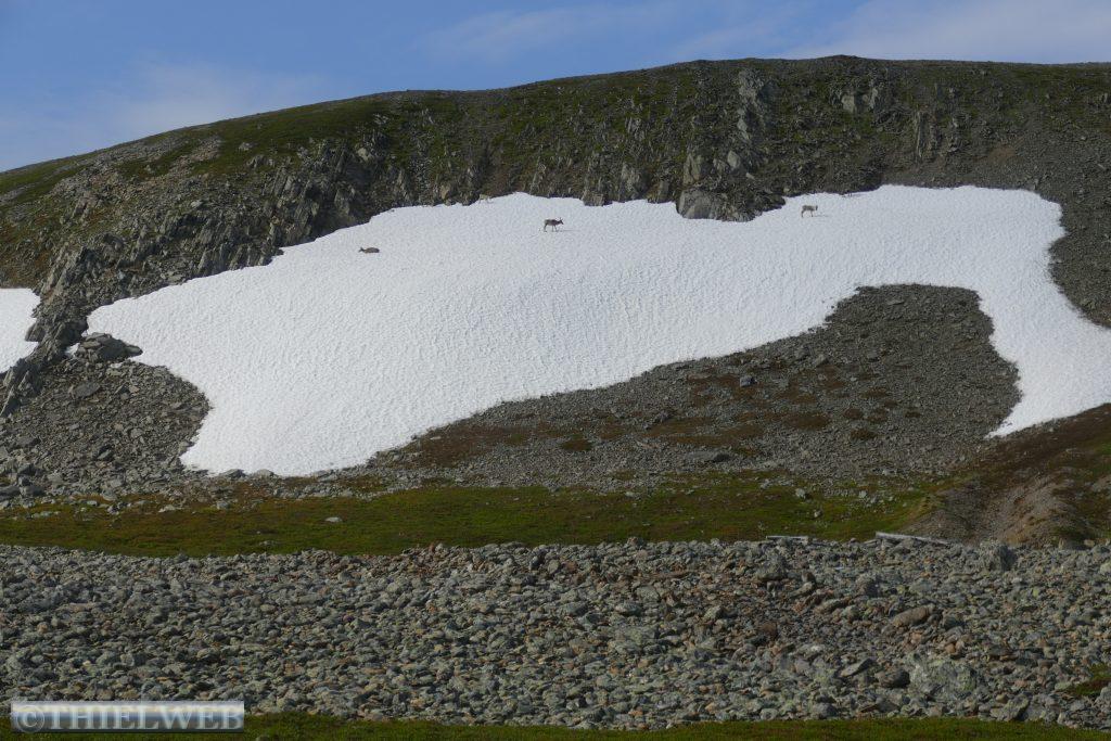 Um kurz vor 00.00 Uhr werden wir wach, eine Herde Rentiere läuft über den Parkplatz. Es ist taghell, als wir um ca. 2.00 Uhr aus dem Fenster schauen. Spiegelglatt liegt der Fjord da und ein paar Delphine ziehen ihre Runden. Am Morgen sind es 19° C und wir können uns noch nicht vorstellen, dass die Wettervorhersage das nächste Tief angekündigt hat.