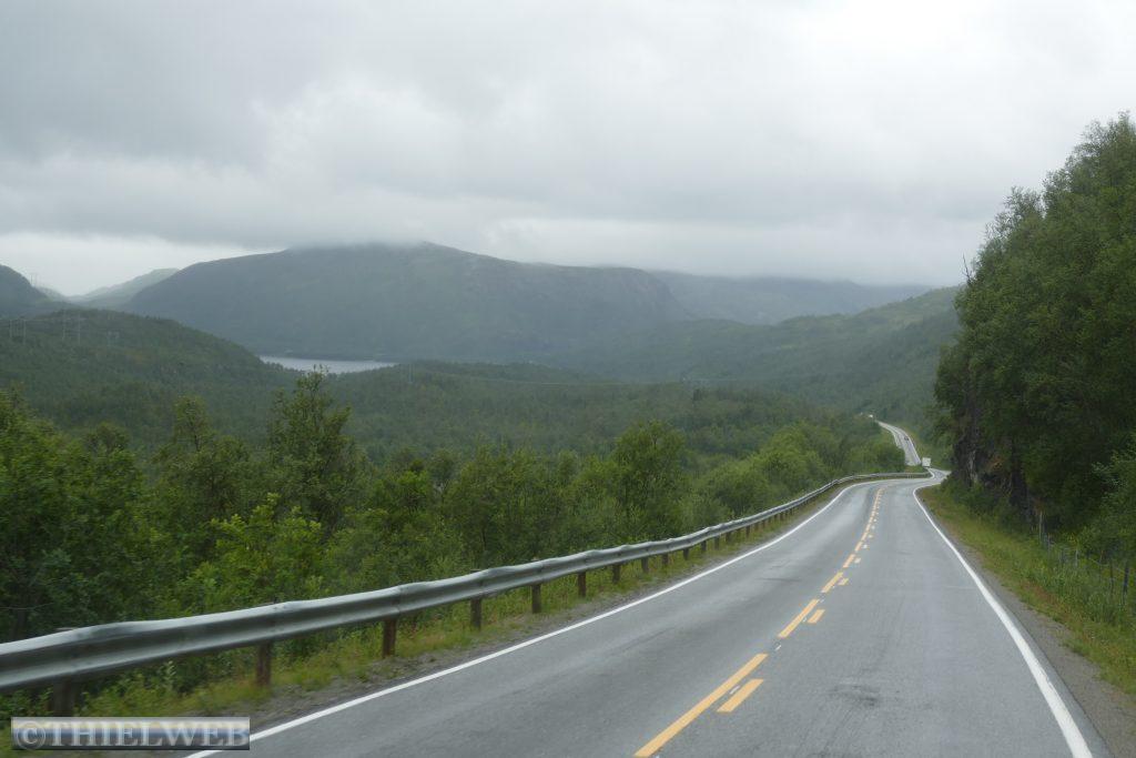 Am gestrigen Abend, als der Regen kurz nachließ, haben wir noch einen kleinen Spaziergang durch Havøysund gemacht. Seit dem Abend hat es dann immer wieder geregnet, was sich bis zum Mittag fortsetzt. Am Morgen fahren wir auf der Landschaftsroute Havøysund bis Smørfjord zurück und biegen auf die E6 Richtung Alta ab. Leider können wir durch den dicken Nebel und Regen nicht viel von der schönen Landschaft sehen. Dann bekommen wir eine Nachricht von Carglass, dass das Tor der Werkstatt zu niedrig ist und wir die Frontscheibe in einen anderen Ort wechseln lassen müssen. In Alta tanken wir auf und gehen einkaufen, bevor wir weiter zu einem Parkplatz im Wald ca. 4 km von Alta entfernt fahren. Der Platz liegt direkt am Fluss Altaelv.