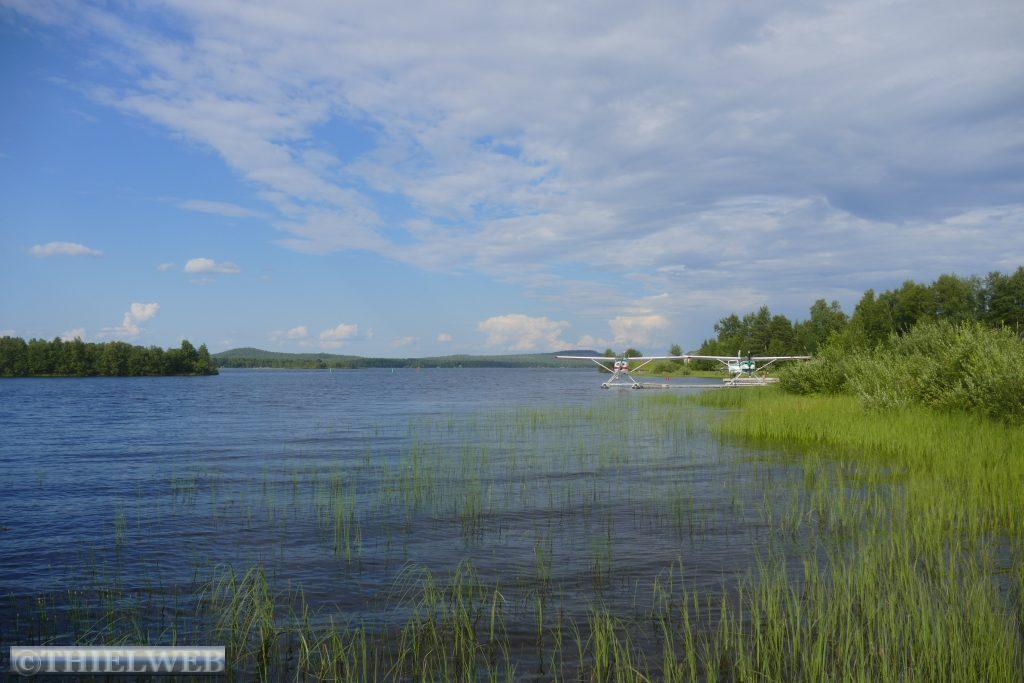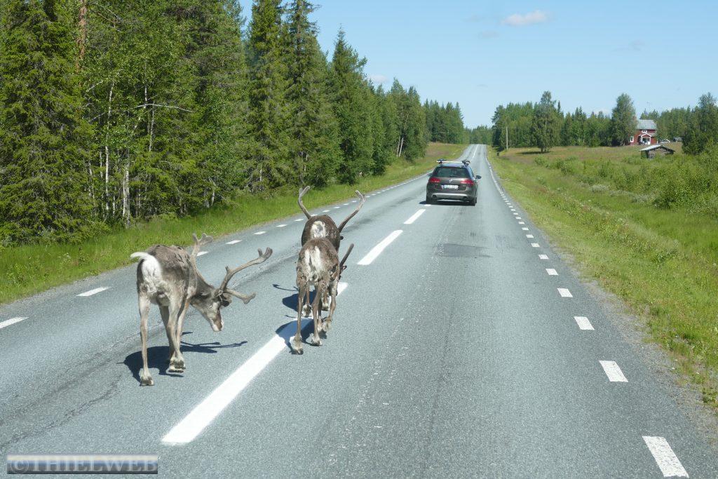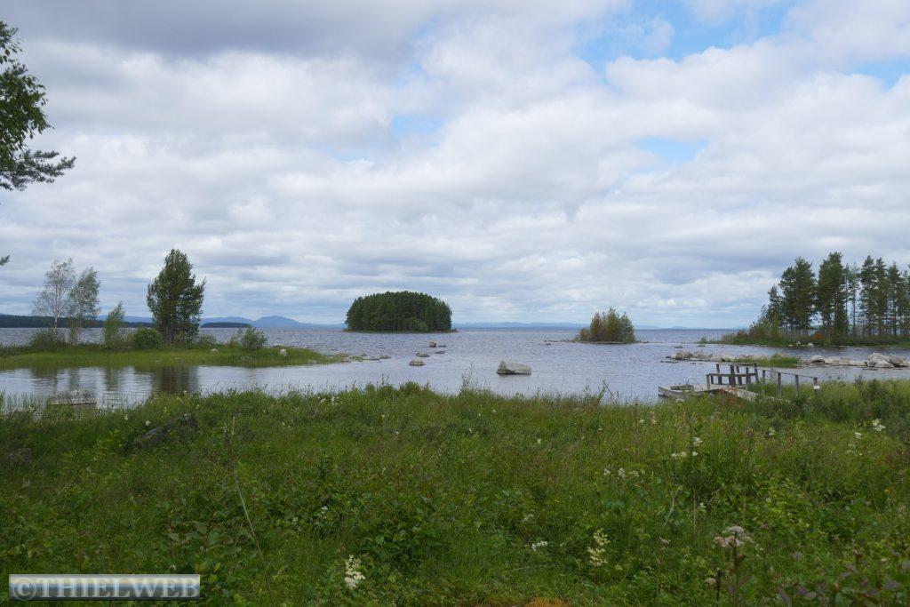 Dann überqueren wir den Grenzfluss und sind in Finnland und in einer anderen Zeitzone. Heute haben wir uns eine längere Strecke vorgenommen und wollen bis Inari kommen. Vor Kittilä ist ein sehr langes Stück Baustelle, also eine Schotterpiste, auf der wir nur sehr langsam vorankommen. In Kittilä sehe ich das Schild Inari links abbiegen, doch unser Navi will geradeaus und dann nach rechts. Da ich fahre, kann ich nicht reagieren, dass es wohl eine bessere Strecke über die 955 gibt. Die Himmelsrichtung auf der Straße 80 stimmt irgendwie nicht. Bei unserer nächsten Pause bemerken wir, dass uns das Navi über Sodankylä zur Straße 4 führt, ein Umweg von ca. 100 km. Nun sind wir schon zu weit. Endlos geradeaus durch nicht enden wollende Wälder, mal ein See. Es gibt mehr Rentiere als Tankstellen. Wir kommen nach Ivalo, einer größeren Stadt mit Einkaufsmöglichkeiten und Tankstellen. Da sehen wir ein Schild, 300 km Murmansk. Von jetzt an geht es bis Inari am Inari-See entlang, dem drittgrößten See Finnlands und der heilige See der Samen. Inari erreichen wir nach 409 km.