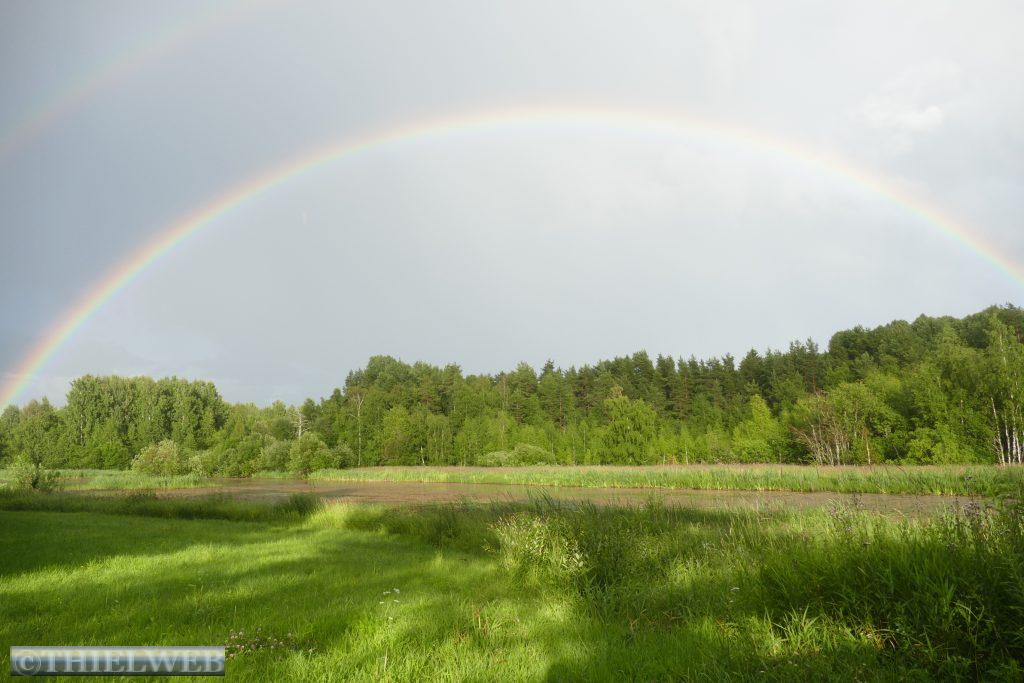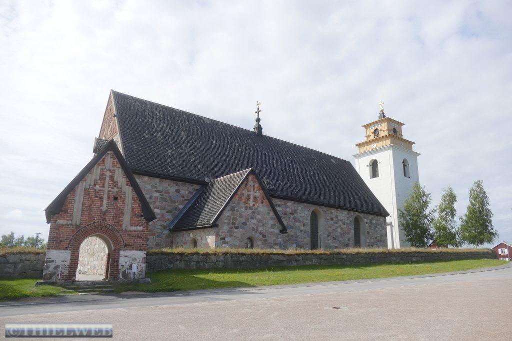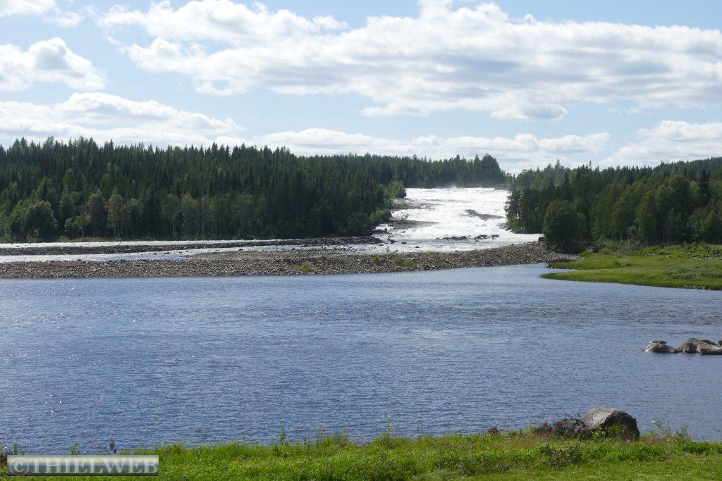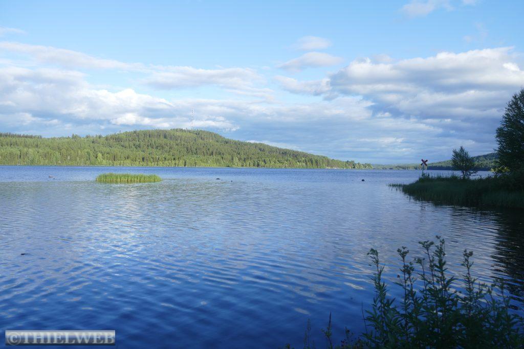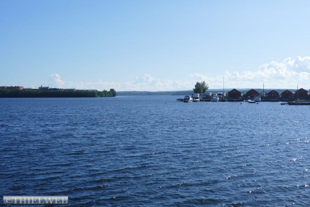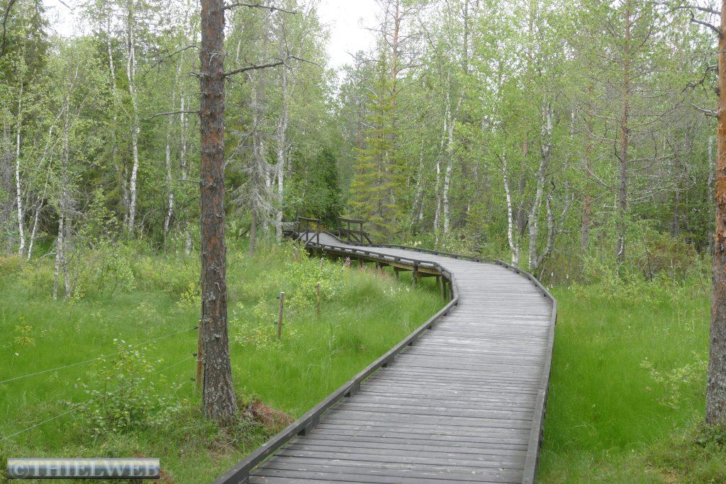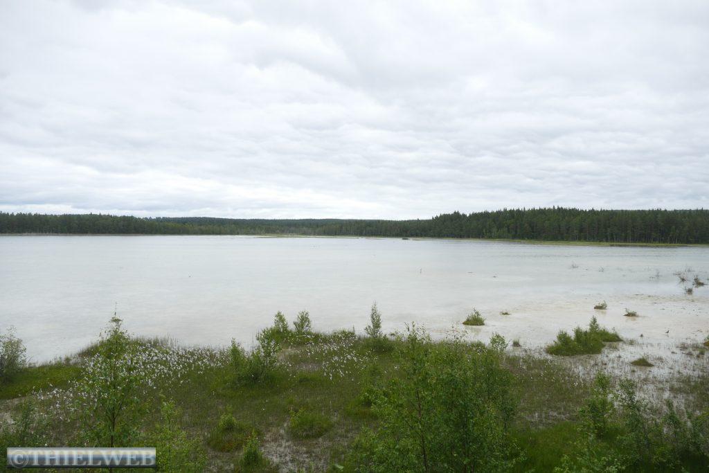 Nach 20 km kommen wir nach Pajala, unserem letzten Ort in Schweden. Wir tanken nochmal zum günstigsten schwedischen Preis von 1,565 €/l und sehen uns die größte Sonnenuhr der Welt an. Sie hat einen Durchmesser von 38,33 Metern und befindet sich 70 km nördlich des Polarkreises. Der Pfahl in der Mitte liegt parallel zur Erdachse und zeigt in Richtung Nordstern.