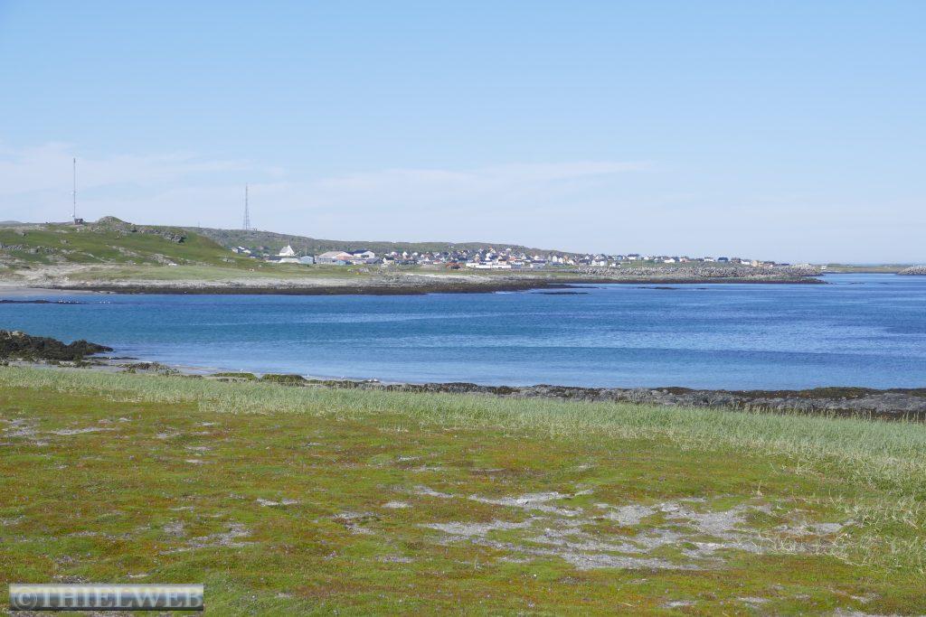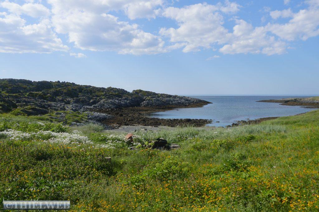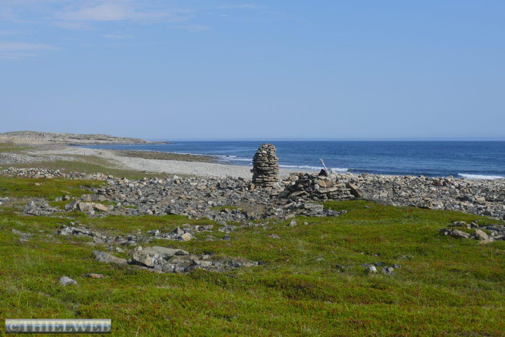 Am Abend verzieht sich der Nebel für kurze Zeit und wir wandern noch auf den Hügel hinter dem Dorf. Oben befinden sich noch Überreste der Küstenbatterie aus dem Zweiten Weltkrieg. Die Aussicht ist grandios.