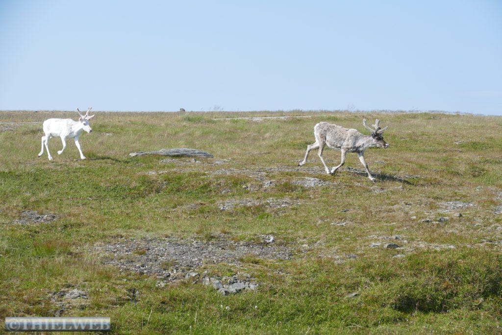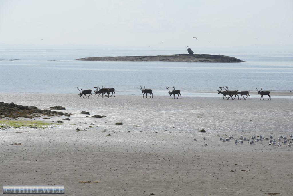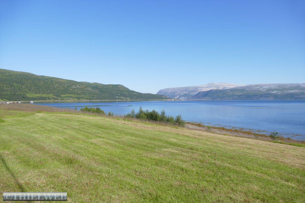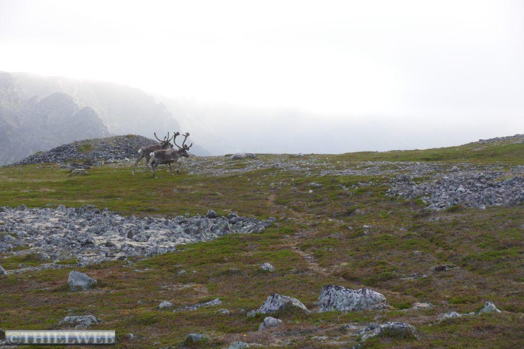 Um kurz vor 00.00 Uhr werden wir wach, eine Herde Rentiere läuft über den Parkplatz. Es ist taghell, als wir um ca. 2.00 Uhr aus dem Fenster schauen. Spiegelglatt liegt der Fjord da und ein paar Delphine ziehen ihre Runden. Am Morgen sind es 19° C und wir können uns noch nicht vorstellen, dass die Wettervorhersage das nächste Tief angekündigt hat.