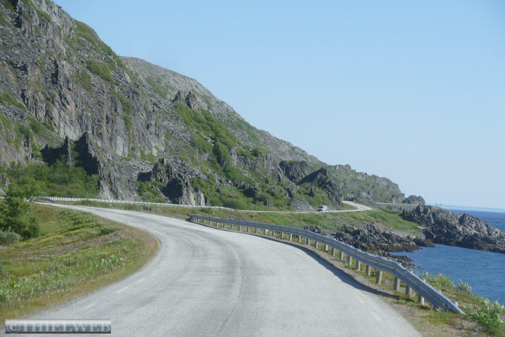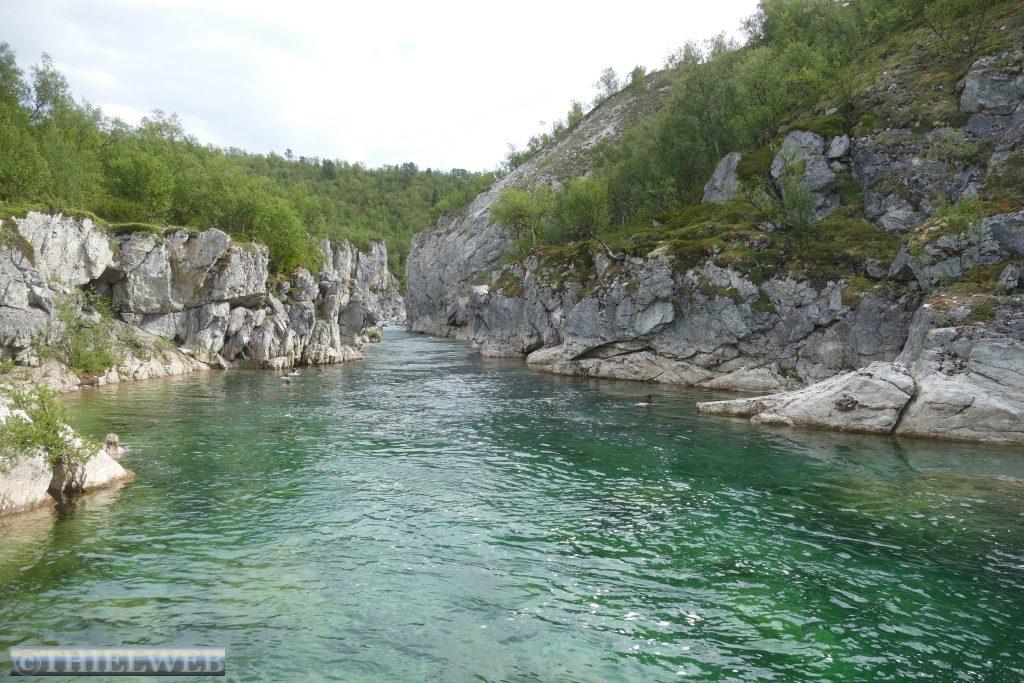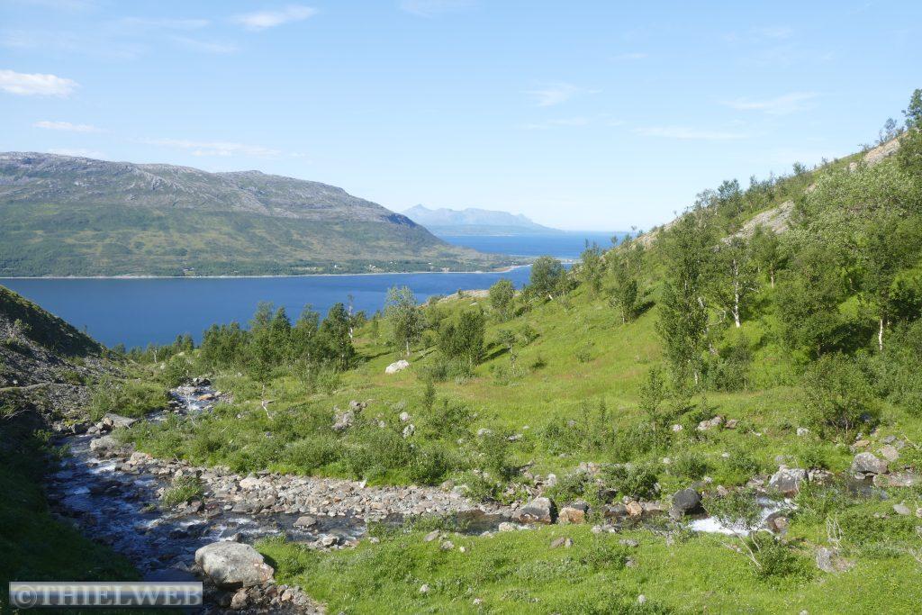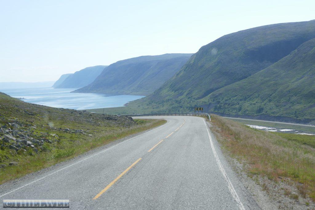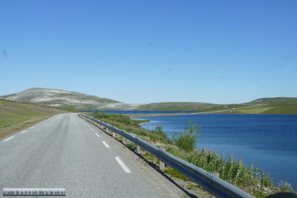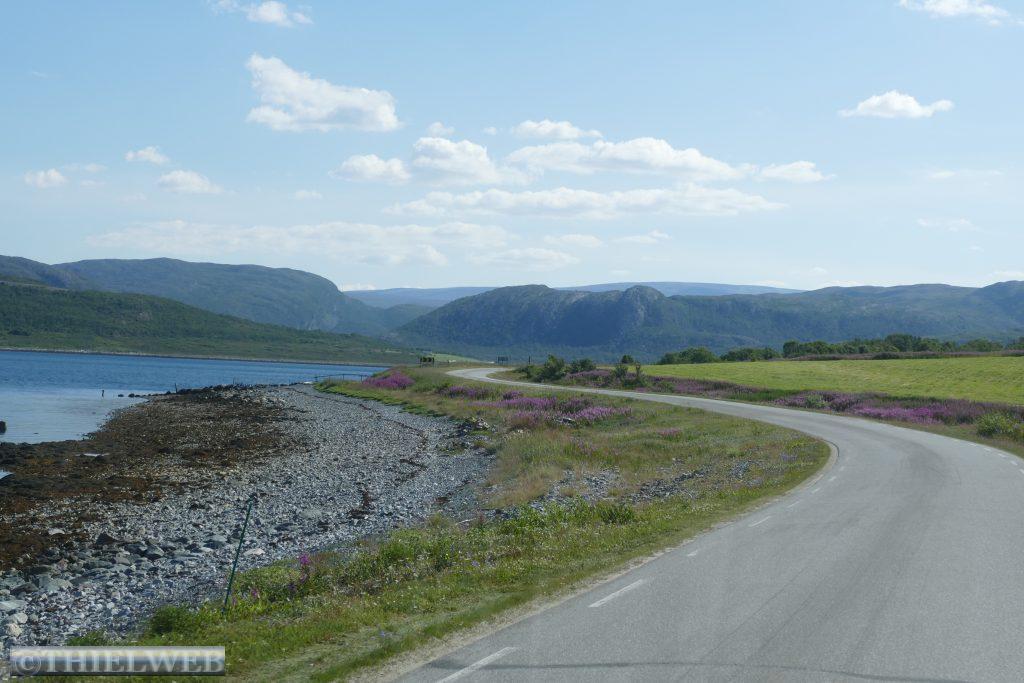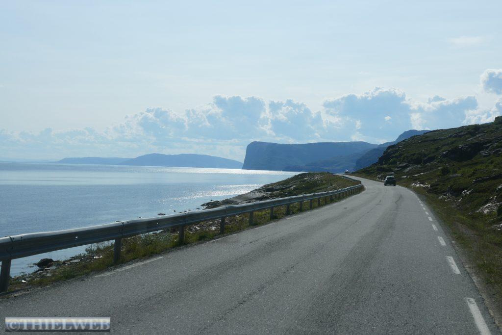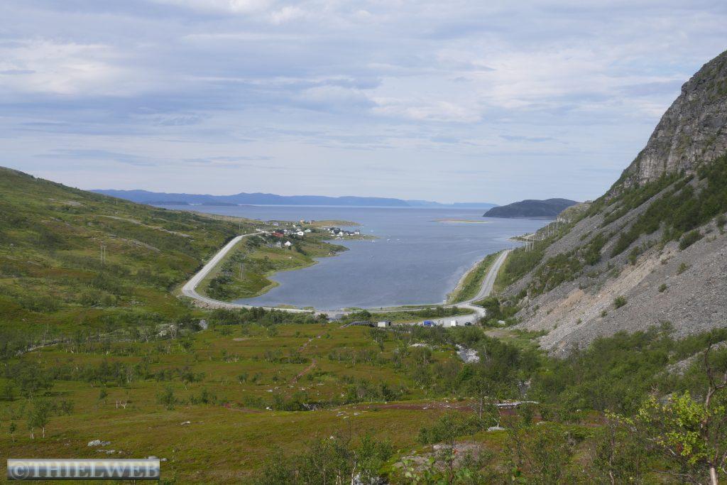 Die Nacht war entsprechend kurz, als wir die Fahrt auf der 888 zurück nach Ifjord zum Entsorgen fortsetzen. Unterwegs machen wir einen kurzen Halt in Gamvik. Es sind bereits 28° C. Über Ifjord fahren wir dann auf der FV98 weiter bis Bjørselv und sehen uns unterwegs das beeindruckende Adamselv Flussdelta an. Die Temperatur ist mittlerweile drastisch auf 20° gefallen. Wenige Kilometer weiter kommen wir zum imposanten Silfar Canyon, den wir uns natürlich ansehen. Wir folgen dem kleinen Pfad, der an verschiedenen Stellen den Blick auf das tosende Wasser des Børselva freigibt. In Lakselv tanken wir recht teuer auf und kaufen nochmal ein, bevor wir auf der Europastraße E6 am Ufer des Porsangerfjord in Richtung Nordkap fahren. Einen Parkplatz mit Blick auf den Fjord wählen wir für die Nacht.