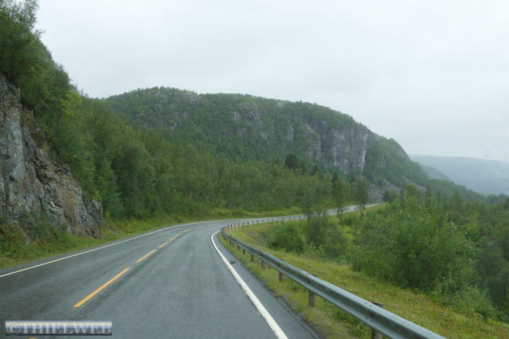 Am gestrigen Abend, als der Regen kurz nachließ, haben wir noch einen kleinen Spaziergang durch Havøysund gemacht. Seit dem Abend hat es dann immer wieder geregnet, was sich bis zum Mittag fortsetzt. Am Morgen fahren wir auf der Landschaftsroute Havøysund bis Smørfjord zurück und biegen auf die E6 Richtung Alta ab. Leider können wir durch den dicken Nebel und Regen nicht viel von der schönen Landschaft sehen. Dann bekommen wir eine Nachricht von Carglass, dass das Tor der Werkstatt zu niedrig ist und wir die Frontscheibe in einen anderen Ort wechseln lassen müssen. In Alta tanken wir auf und gehen einkaufen, bevor wir weiter zu einem Parkplatz im Wald ca. 4 km von Alta entfernt fahren. Der Platz liegt direkt am Fluss Altaelv.