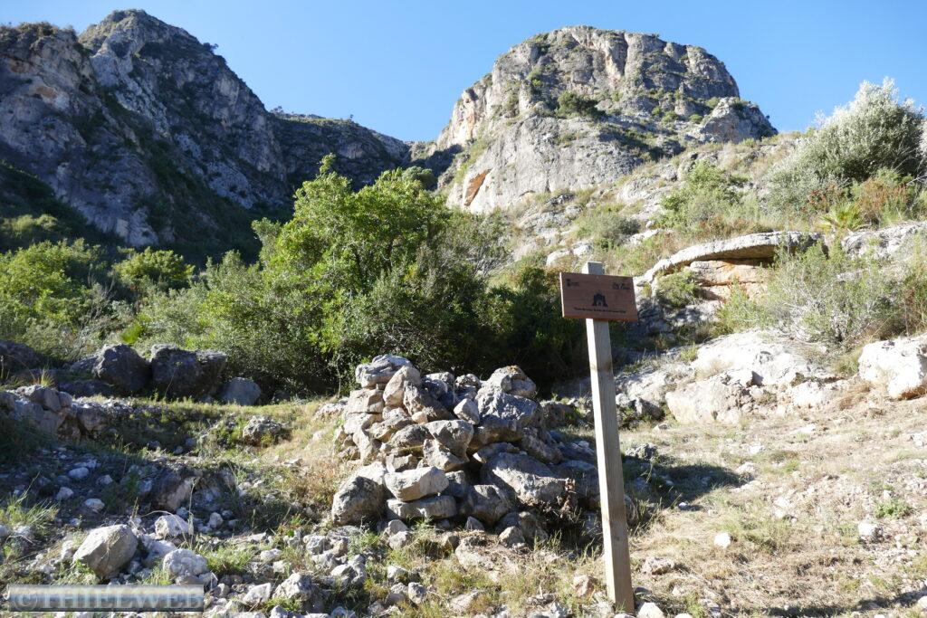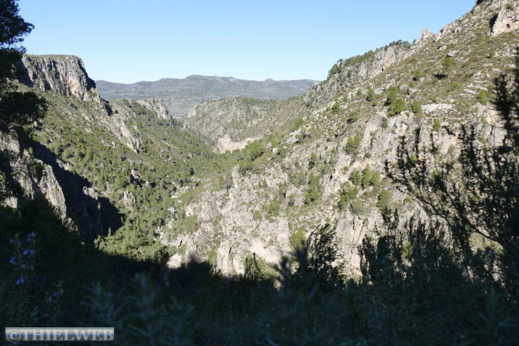 Bei einem kühlen Wind, doch herrlichen Sonnenschein steigen wir zur Ermita del Santo Cristo de Planes hinauf und haben einen schönen Rundumblick auf die Bergwelt und die mit Obst- und Oliven bewirtschafteten Terrassen. Weiter führt der Wanderweg durch Olivenplantagen, die gerade abgeerntet werden in den Barranc de LÉncanta. Weit unten in der tiefen Schlucht fließt der Fluss, der gerade nicht viel Wasser führt. So ist der Wasserfall, den wir bald erreichen auch nicht sehr spektakulär. Immer oberhalb der Schlucht kommen wir an einer zerstörten Mühle vorbei, bevor der Wanderweg aus eine kleine Asphaltstraße mündet, die wir nach Planes zurückwandern.
