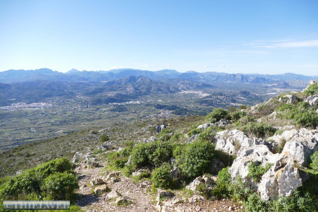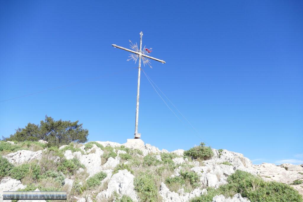 Jede Menge Wanderer sind auf dem Weg zur Eremita du Pare Pere als wir zum Ausgangspunkt unserer Wanderung gehen. Es ist sofort zu merken, dass heute Nationalfeiertag ist. Am Einstieg treffen wir auf eine Familie, die Deutsch spricht und uns die Wandermöglichkeiten kurz erläutert. Eigentlich hatten wir uns die leichte Wanderung zur Grotte Cova de L´Aigua und Racó del Bou ausgesucht und nur kurz mit dem Gedanken gespielt, zum La Creueta aufzusteigen, da der Weg sehr schwer und steil ist. Der Mann meinte jedoch, dass nur ein kleines Stück etwas steil, jedoch gutzugehen ist. Wir wagen es. Zuerst geht es sanft bergan, dann folgt das steile abschüssige Serpentinstück. Zum Glück kommen uns ab und an ein paar Wanderer entgegen, wodurch wir erkennen können, wo der Weg entlang läuft. Auf dem Plateau angekommen folgt der Weg durch Buschwerk wie Zistrose, Kermes-Eiche und Zwergpalmen und steigt dann nochmals sehr steil zwischen den abgetragenen Felsen an zum Gipfelkreuz de Denia auf. Ein eiskalter Wind weht uns fast weg. Schnell noch ein Foto und dann Abstieg auf demselben Weg.