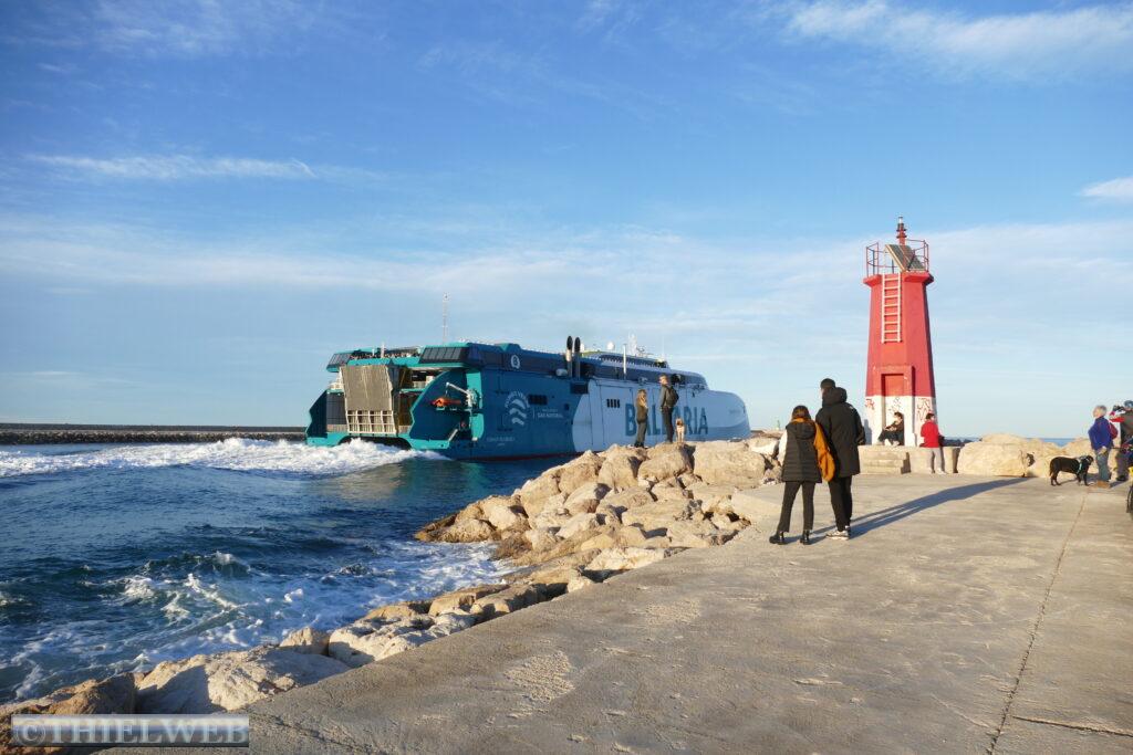 Nach der Reparatur des Fahrradreifens fahren wir parallel zur Küste Richtung Norden zuerst nach Oliva. Hier besorgen wir uns eine Radkarte, nach der wir die Via Verde bis Gandia nehmen. Immer durch Orangenplantagen führt die ehemalige Bahnstrecke zwischen Denia und Vergel. Am Rathaus von Gandia legen wir eine kurze Rast ein, um danach auf dem gleichen Weg zurück zu radeln. Bei den Orangenplantagen sammeln wir uns noch ein paar der leckeren Früchte auf. Wieder in Denia ist unser nächstes Ziel der Hafen und die Mole Escollera Norte. Entlang der Meerespromenade der felsigen Küste von Las Rotas sehen wir schon bald danach den Wachtturm Gerro hoch über der Küste. Hier kehren wir um, um noch auf die Escollera Sur hinauszufahren. Gerade zur rechten Zeit als die Fischerboote vom Meer zurückkommen und eine riesige Fähre auf die Balearen ausläuft.