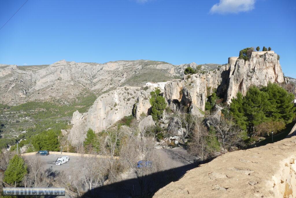 Eines der schönsten Dörfer in Spanien soll El Castell del Guadalest sein. Wir nutzten noch die Entsorgung in Benissa, da wir auch Wasser tanken müssen. Eine landschaftlich sehr reizvolle Straße führt uns zuerst Richtung Süden bis wir kurz vor Altea ins Landesinnere abbiegen. Die unmittelbar hinter dem Meer aufragenden Bergwelt beeindruckt sogleich. Große Plantagen sind mit Netzen abgedeckt und wollen nicht so recht in diese schöne Landschaft passen. In engen Serpentinen geht es immer weiter hinauf. Dann können wir Guadalest mit seiner auf dem Bergkamm thronenden Ruine von weitem sehen. Im Ort gibt es einen Wohnmobilstellplatz für 6 € direkt unterhalb vom Kastell. Von hier aus starten wir eine kleine Wanderung zum nahen Stausee. Erschreckend wenig Wasser ist darin. Der Wanderweg führt zuerst entlang des Sees und dann steil hinauf zu dem tollen Hotel „Vivood“. Von hier aus gehen wir zurück nach Guadalest und sehen uns noch im Innenhof des Kastells mit vielen Souvenir Geschäften um. Der Wind bläst unerbittlich schon den ganzen Tag und wir sind froh, als wir wieder im Wohnmobil sind.