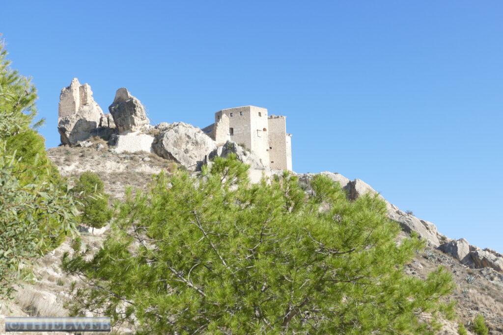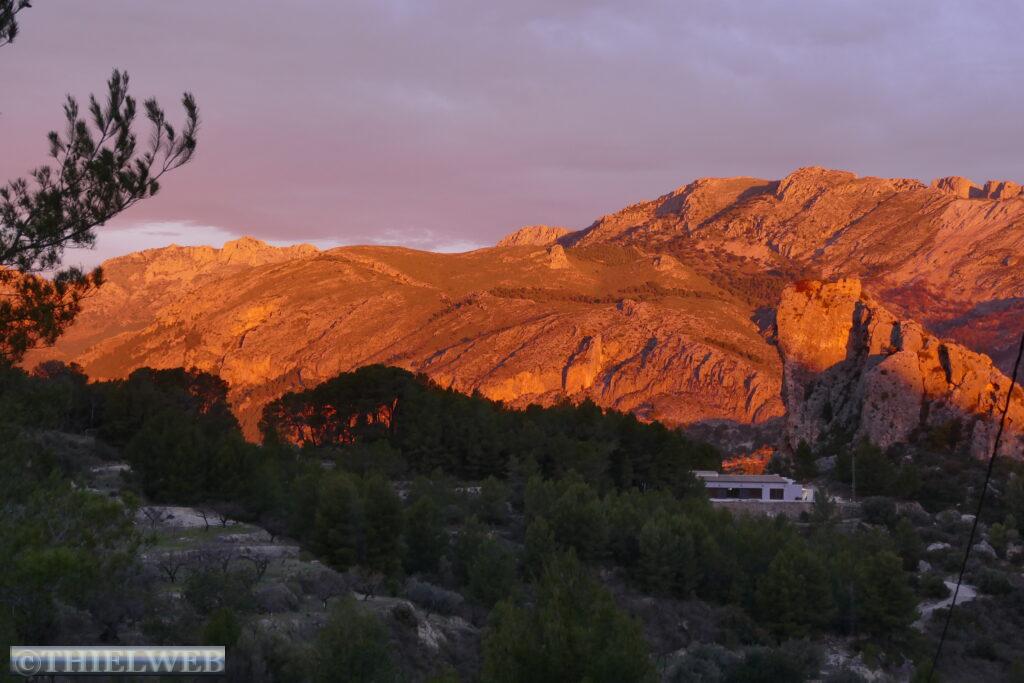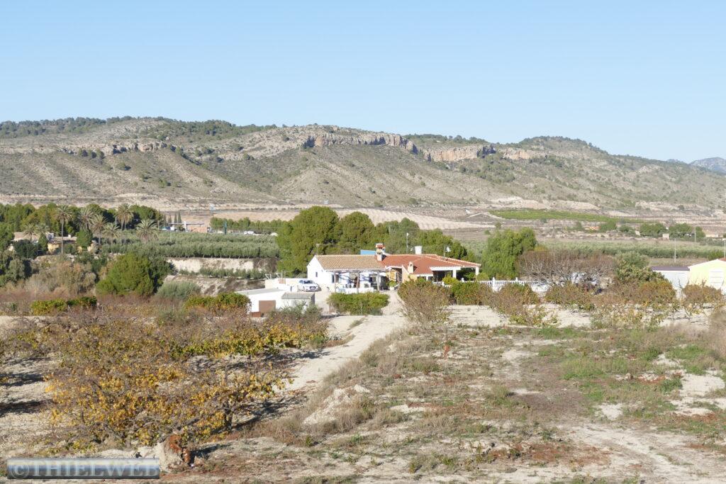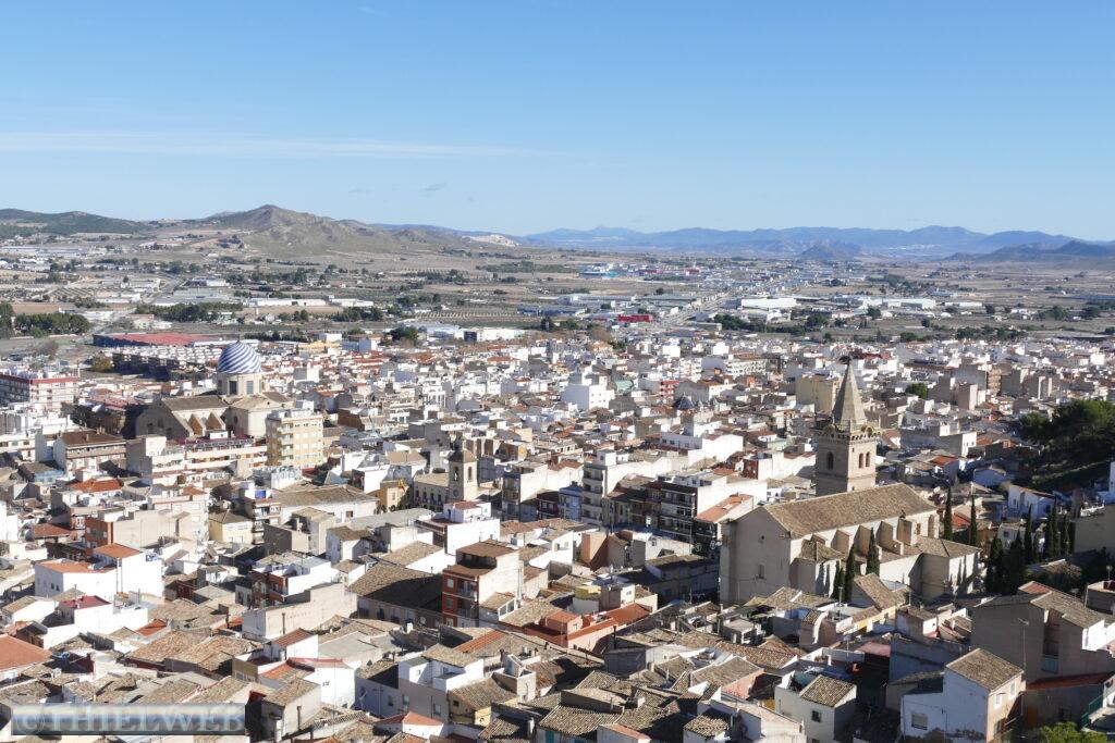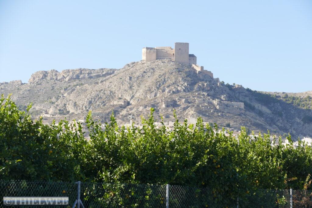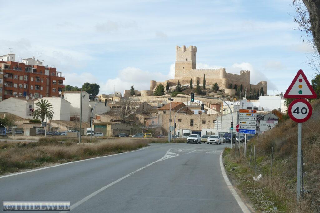 Der Wind „nervt“, mal ist es ruhig, doch dann kommt, einem Güterzug gleich, die nächste Windböe und rüttelt uns durch. Am Morgen lassen die ersten Sonnenstrahlen die Bergwelt erglühen. Wir überlegen, was wir nun machen. Weiter ins Landesinnere oder zurück zur Küste. Wir entschließen uns, erst einmal zu einer kleinen Wanderung auf der anderen Seite am Stausee entlang und danach durch die malerisch gelegenen Orte Beniara und Benimantell, wo wir uns eine Leckerei beim Bäcker kaufen, zu machen. Kalt es ist heute bei 13° C nicht und die tolle Berglandschaft entschädigt für den Asphaltweg. Am Anfang wandern wir auch windgeschützt in der vergeblichen Hoffnung, dass der Wind nachlässt. Gegen 14 Uhr verlassen wir Guadalest jetzt doch, wie geplant, in Richtung Yecla. Auf malerischer Strecke entlang von Olivenplantagen erklimmen wir in engen Serpentinen einen Pass von 970 m bei Confrides. Wir stellen fest, dass das Land fast überall mit Plantagen aller Art bewirtschaftet wird. Viehzucht haben wir bis jetzt noch gar nicht gesehen. Dann folgt eine weitere Serpentinenstrecke abwärts bevor wir wieder auf über 800 m ansteigen. Eine Stunde folgen wir der nun schon der kleinen Straße bis Alcoy. Jetzt geht es auf der mautfreien Autobahn weiter. Hier macht sich wieder der starke Wind bemerkbar. Wir erreichen Villena mit seiner beeindruckenden Burg und halten nach einem Parkplatz Ausschau. Enge, steile Gassen und ein Parkplatz für unser Wohnmobil ist nicht zu finden. Unser Navi schickt uns zu guter Letzt auch noch in eine enge Sackgasse. Als wir rückwärts versuchen herauszukommen, hält eine junge Frau an und fragt, ob sie helfen kann. Wir sagen, dass wir nach Yecla wollen. Sie winkt, dass wir ihr folgen sollen. Wir sind mal wieder über die Freundlichkeit baff und folgen ihr im Bogen um den Ort bis wir die Straße nach Yecla erreichen. Erleichtert fahren wir weiter durch die sich jetzt stark veränderte, fast ebene Landschaft mit endlos scheinenden Weinfeldern bis Yecla.