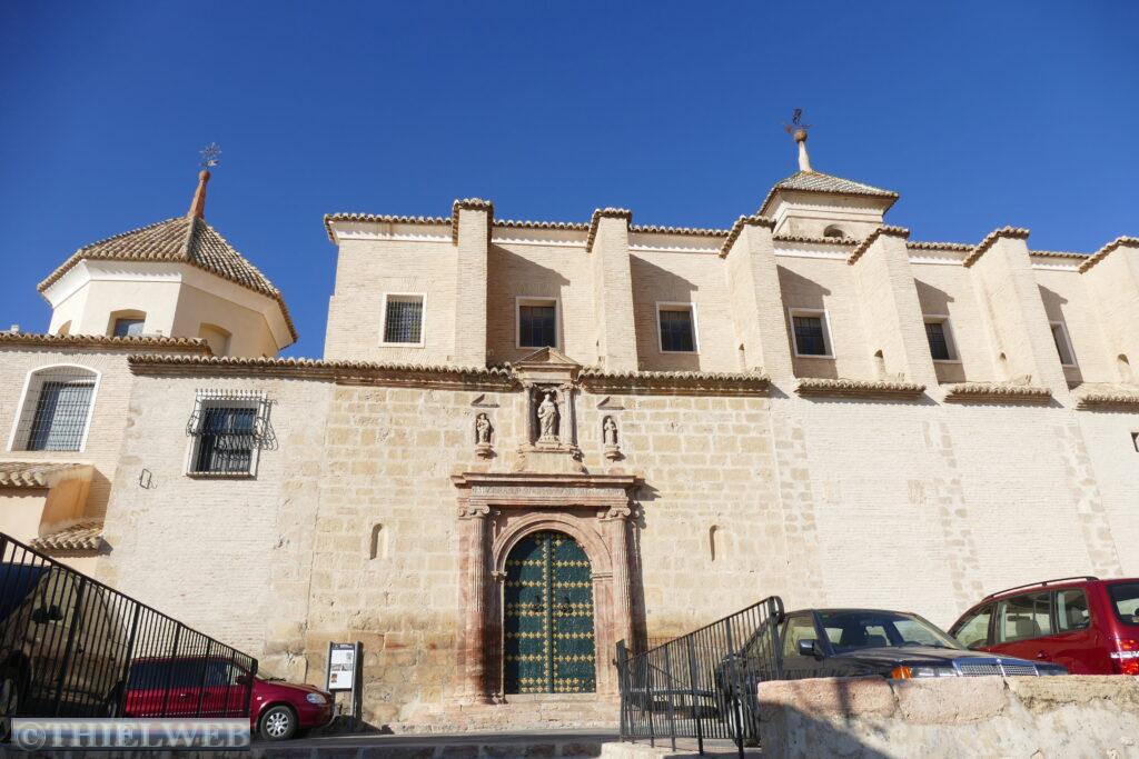 Der Wind will einfach nicht aufhören und am Morgen sind es nur 9°C als wir uns in das Zentrum von Yecla begeben. In der Touristeninformation, wo die nette Dame leider nur Spanisch spricht, versuchen wir die nötigen Informationen zu erhalten. Am Plaza Major sind die Hauptsehenswürdigkeiten mit dem Rathaus und dem House of Arc. Unser Weg durch die Stadt führt uns zuerst zur Basilica of the Immaculate Conception mit ihrer hübschen blau weißen Kuppel. Auch der Innenraum ist in Blautönen gehalten. Dann gehen wir zum kleinen Mercado, und schlendern, die Kirchen suchend, durch die wie auf dem Reißbrett angelegten schmalen Gassen. An jeder Kreuzung sind Fußgängerüberwege auf allen vier Seiten. Autofahren möchte ich hier nicht, denn diese halten strikt an, wenn Fußgänger kommen. Wieder am Plaza Major steigen wir zum Kastell hinauf, an der Parish of the Assumption mit ihren Fries aus unterschiedlichen Köpfen vorbei. Das Kastell ist leider geschlossen und so machen wir nur ein Foto von der Kirche.