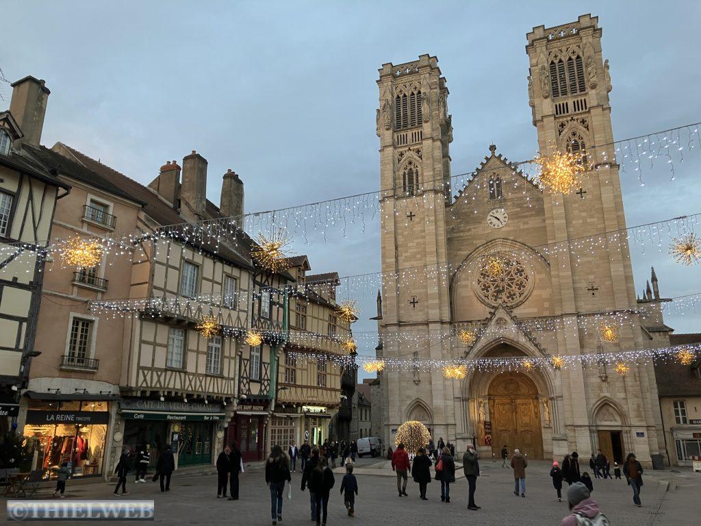 Regen begleitete uns am Morgen bis hinter Karlsruhe. Bei Mulhouse überquerten wir die Grenze zu Frankreich. Nun wurde die Fahrt entspannter. Klägliche Versuche der Sonne scheiterten immer wieder, doch mittlerweile sind es angenehme 13 °C. Unterwegs gibt es das erste Baguette bei einer Pause. Immer noch dunkle, tief hängende Wolken, aber zum Glück kein Regen. Um kurz vor 17 Uhr erreichen wir Chalon-sur-Saone und vertreten uns noch die Füße bei einem kurzen Bummel durch die weihnachtlich geschmückte Innenstadt.
