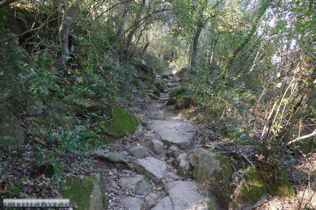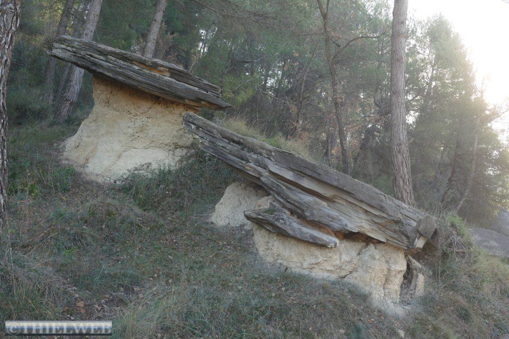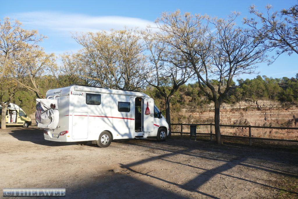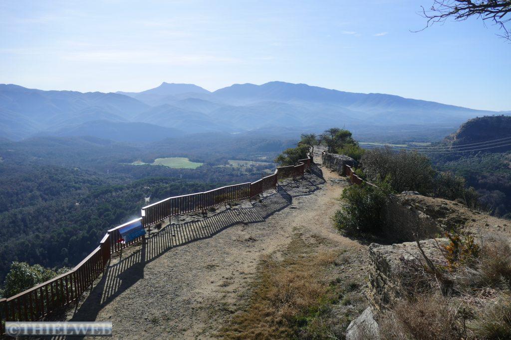 3,8 °C, das war eine sehr kalte Nacht. Am Morgen starten wir zu unserer Wanderung nachdem wir uns noch ein Baguette für unterwegs gekauft haben. Der Nebel hängt noch über den Feldern, doch schon bald zeigt die Sonne was sie kann und wir können unsere dicken Jacken ausziehen. Auf dem gut markierten Wanderweg geht es vorbei an dem durch Erosion geschaffenen El bolet de pedra hinauf zum Aussichtspunkt El Salt de la Minyona. Wir haben einen tollen Blick über den Nationalpark Espai Natural de les Guilleries-Savassona. Nun folgt der Weg einem ständigen auf und ab bis zum Castell Monestir de St. Llorenc. Da es in Privatbesitz ist, kann es nur nach Anmeldung besichtigt werden. Als wir am Nachmittag wieder am Stellplatz sind, zeigt das Thermometer 10 °C und im Womo gerade mal 12 °C. Sofort steht fest, in diesem „kalten Loch“ bleiben wir nicht. Die Entscheidung war gut, wir parken in Avinyo bei mittlerweile 18 °C. Auch hier sehen wir die vielen Wanderschilder. Ein nochmaliger Besuch würde sich lohnen.