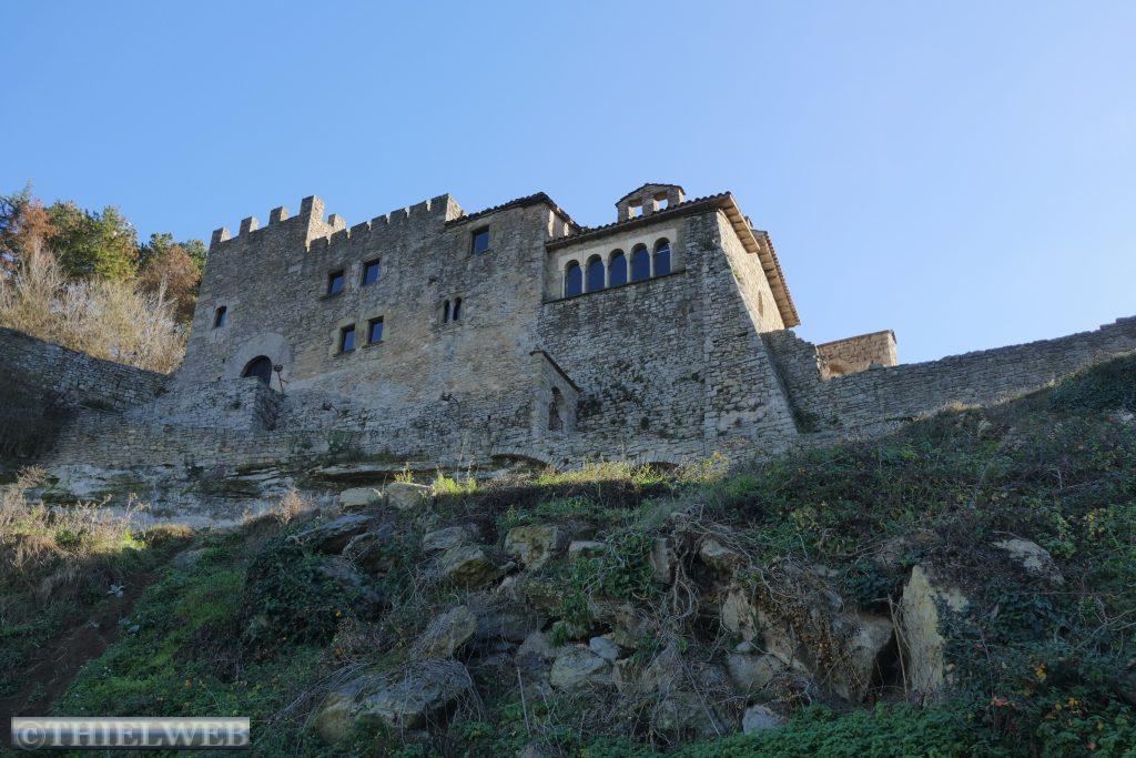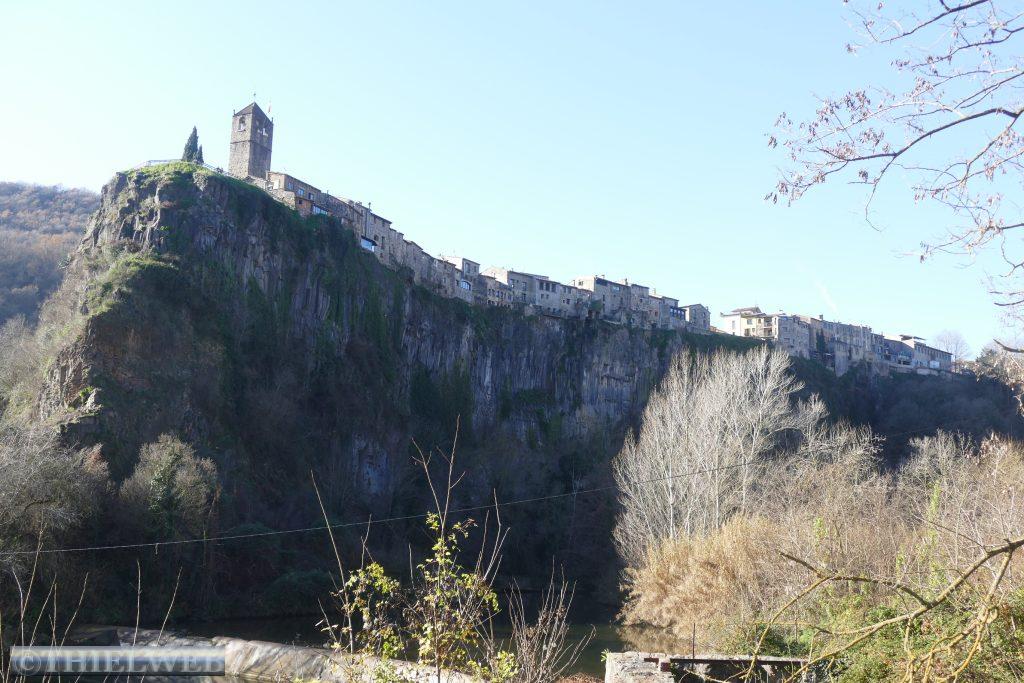 Bei kühlen 7°C fahren wir nur wenige Kilometer bis Castellfollit de la Roca, einem der malerischsten Orte Kataloniens und flächenmäßig kleinsten der Garrotxa. Auf einer Basaltsteinfelswand in 50 m Höhe liegt die mittelalterliche Stadt. Wir gehen durch den historischen Stadtkern und steigen hinab zu einem Holzsteg von wo aus sich ein schöner Blick auf die Stadt bietet. Der Wanderweg steigt hinauf durch einen wunderschönen Eichenwald der charakteristisch für die Region La Garrocha ist, bis wir das Heiligtum der Mar de Déu de la Devensa erreichen. Danach geht es steil bergab, bis wir wieder zum Stellplatz kommen.