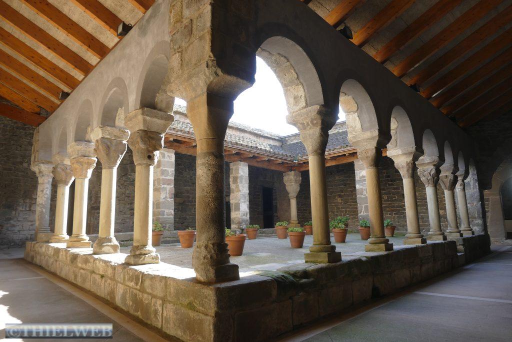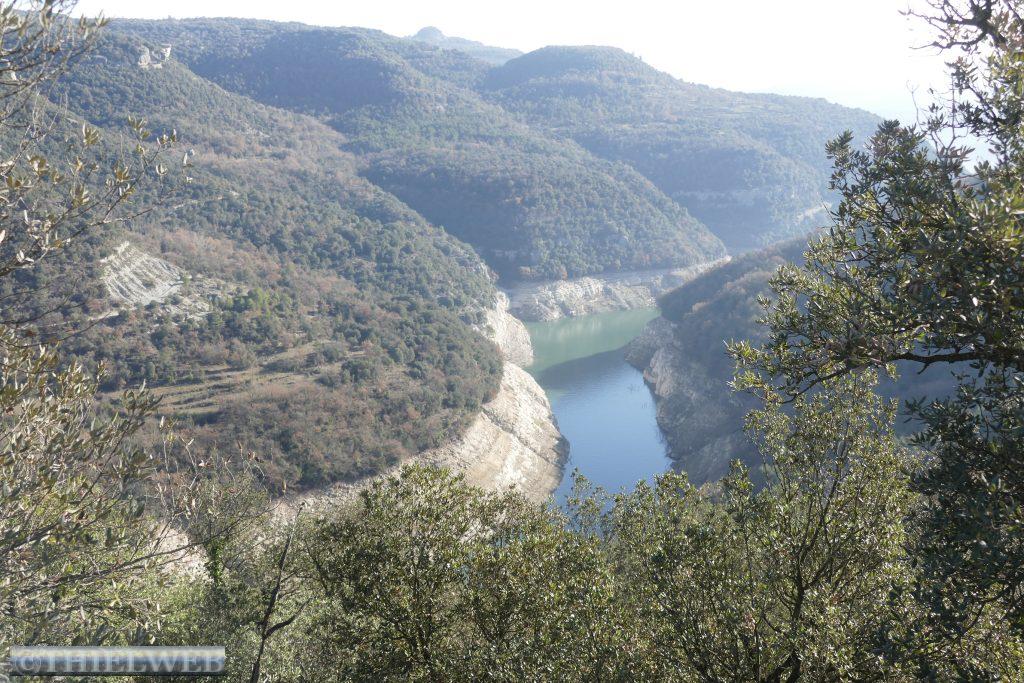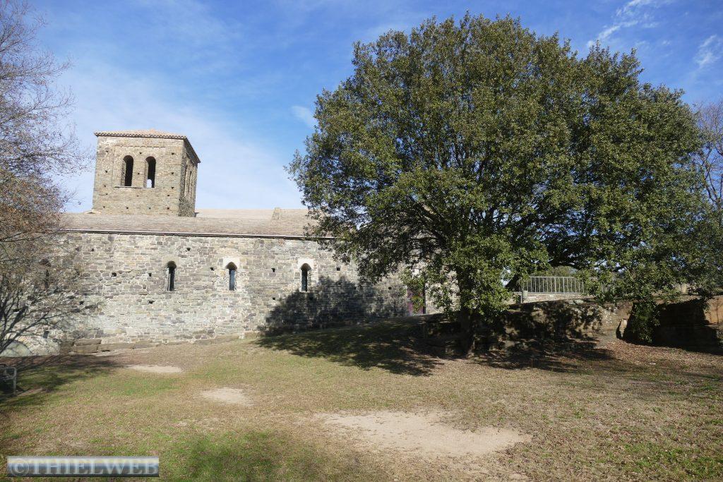 Bei angenehmen 11 °C starten wir, nachdem wir die Ver-, Entsorgung erledigt haben. Über die Serra de Sant Miguel verlassen wir die Provinz Girona und befinden uns jetzt in der Provinz Barcelona. Als wir in Höhe von Vic nach Tavernoles abbiegen, sind es nur noch 2 °C. Wir parken wieder, wie letztes Jahr, auf dem Parkplatz unterhalb des Parador de Turisme de Vic-Sau mit Aussicht auf den Stausee Pantá de Sau, der erschreckend wenig Wasser führt. Auf dem sehr gut markierten Wanderweg „Sender al Monestir“ erreichen wir das Benediktinerkloster Sant Pere de Casserres. Im Innenbereich einer starken Flusskrümmung des Rio Ter liegt das dem Heiligen Petrus geweihte Kloster. Die romanische Kirche mit drei Schiffen und drei Apsiden ist noch komplett erhalten, das Meisterwerk der katalanischen Romanik mit schönem Kreuzgang stammt aus dem Jahr 1015. Ein kurzer Videofilm erklärt uns die Geschichte des Klosters mit deutschen Untertiteln.