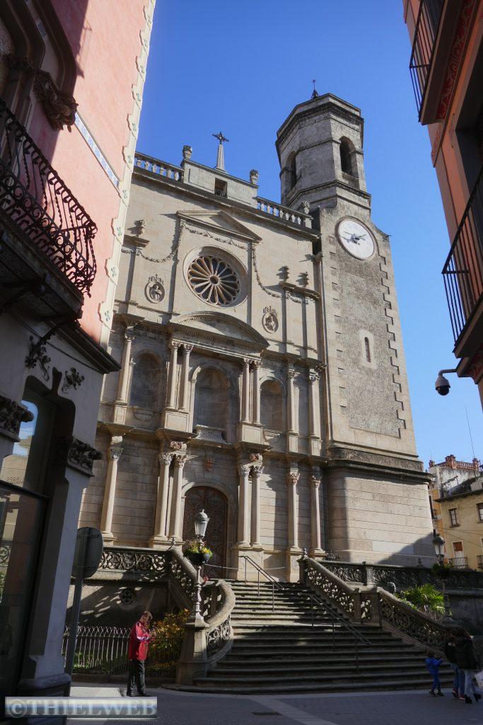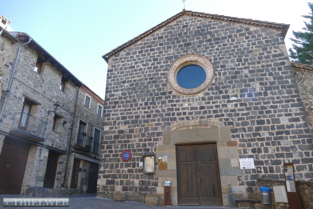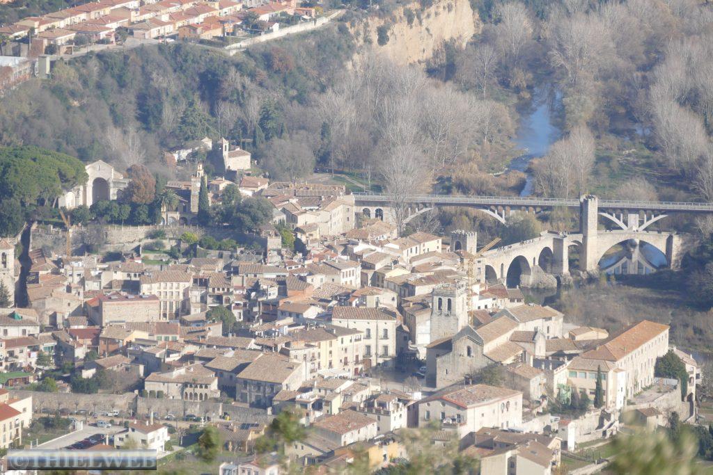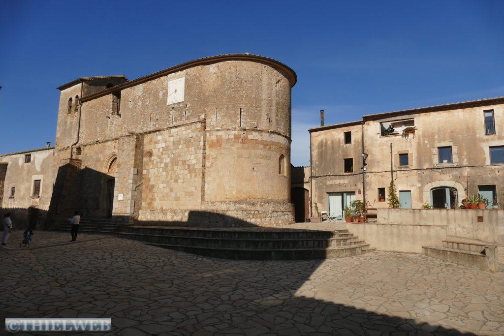 Nur wenige Kilometer weiter befindet sich eines der besterhaltenen mittelalterlichen Städtchen in der Garrotxa. Kleine Steinhäuser und enge Gassen prägen den Ort. Da heute offenbar viel Andrang auf die Stadt ist, wandern wir erst einmal auf den gegenüberliegenden Berg zur Kapelle Sagrat Cor hinauf. In endlos erscheinenden Serpentinen geht es dann abwärts. Auf einmal stehen wir am Rio Fluvia. Gegenüber geht unser Weg weiter. Doch da der Wasserstand im Moment recht hoch ist, können wir den Fluss nicht queren. Es bleibt uns nichts anderes übrig, als wieder zur Straße hinauf zu steigen und diese nach Besalu zu folgen. Über die Brücke Pont Vell besichtigen wir die malerische Altstadt. In der Nähe der Placa Llibertat befindet sich die alte Kirche Sant Pere aus dem 12. Jahrhundert.