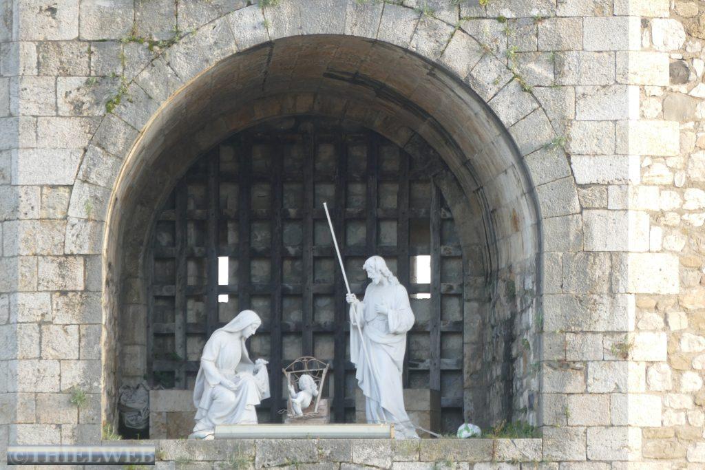 Um 9 Uhr fahren wir zurück nach Perpignan und weiter auf der N II über die Grenze bis La Jonquera, wo wir die Ver- und Entsorgung erledigen. In Figueres tanken wir an der Avanza Tankstelle für 1,459 € und machen auch gleich noch den AddBlue Tank voll. Nun müssen wir nur noch unsere heute Morgen leer gewordene Repsol Gasflasche tauschen. Wir fahren mehrere Tankstellen an, überall ist Propangas ausverkauft. Schon wollen wir aufgeben und weiter nach Baskara fahren, als wir den Zugang zu einer Tankstelle als letzten Versuch suchen. Dabei kommen wir an einem kleinen Laden vorbei, wo die orangen Flaschen vor der Tür stehen. Hier können wir endlich die Gasflasche tauschen, die mittlerweile auch 2 € teurer ist. Die paar Kilometer bis Baskara sind schnell geschafft, und der Parkplatz am Sportplatz völlig leer. Zunächst wollen wir uns wegen des lebendigen Krippenspiels am morgigen Tag erkundigen. Wir sehen schon die vorbereiteten Stände und erfahren, dass es morgen um 19 Uhr losgeht. Wieder zurück am Womo unternehmen wir noch eine kleine Wanderung um die Ortschaft über Calabuig und entlang von Feldern und durch ein Wäldchen.