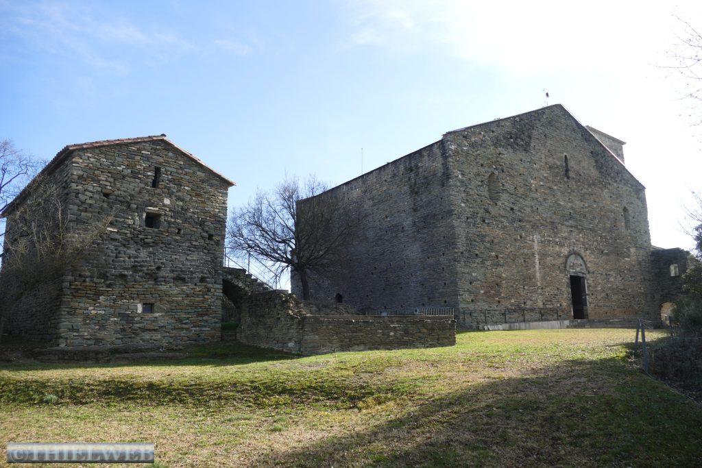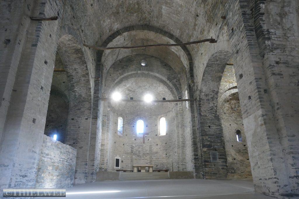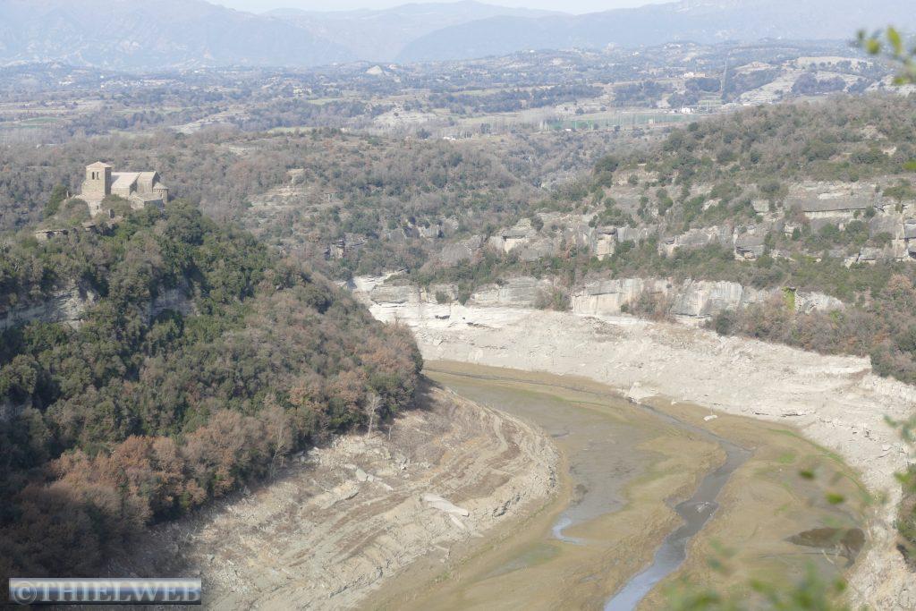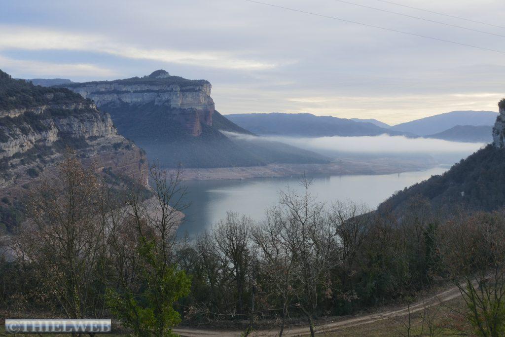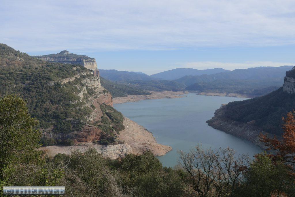 Bei angenehmen 11 °C starten wir, nachdem wir die Ver-, Entsorgung erledigt haben. Über die Serra de Sant Miguel verlassen wir die Provinz Girona und befinden uns jetzt in der Provinz Barcelona. Als wir in Höhe von Vic nach Tavernoles abbiegen, sind es nur noch 2 °C. Wir parken wieder, wie letztes Jahr, auf dem Parkplatz unterhalb des Parador de Turisme de Vic-Sau mit Aussicht auf den Stausee Pantá de Sau, der erschreckend wenig Wasser führt. Auf dem sehr gut markierten Wanderweg „Sender al Monestir“ erreichen wir das Benediktinerkloster Sant Pere de Casserres. Im Innenbereich einer starken Flusskrümmung des Rio Ter liegt das dem Heiligen Petrus geweihte Kloster. Die romanische Kirche mit drei Schiffen und drei Apsiden ist noch komplett erhalten, das Meisterwerk der katalanischen Romanik mit schönem Kreuzgang stammt aus dem Jahr 1015. Ein kurzer Videofilm erklärt uns die Geschichte des Klosters mit deutschen Untertiteln.