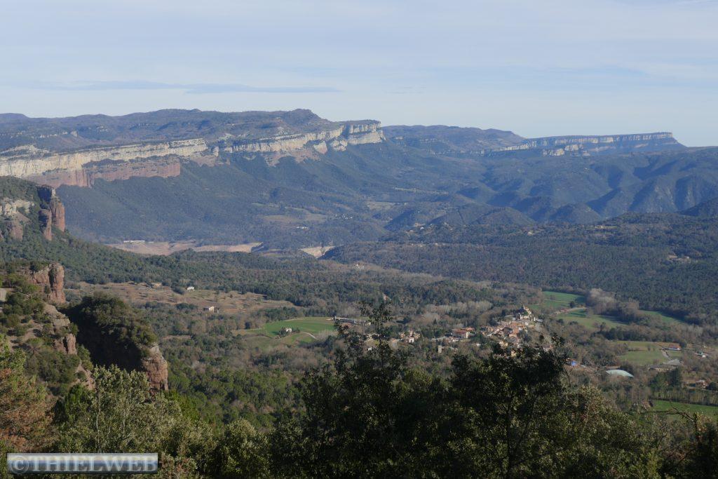 3,8 °C, das war eine sehr kalte Nacht. Am Morgen starten wir zu unserer Wanderung nachdem wir uns noch ein Baguette für unterwegs gekauft haben. Der Nebel hängt noch über den Feldern, doch schon bald zeigt die Sonne was sie kann und wir können unsere dicken Jacken ausziehen. Auf dem gut markierten Wanderweg geht es vorbei an dem durch Erosion geschaffenen El bolet de pedra hinauf zum Aussichtspunkt El Salt de la Minyona. Wir haben einen tollen Blick über den Nationalpark Espai Natural de les Guilleries-Savassona. Nun folgt der Weg einem ständigen auf und ab bis zum Castell Monestir de St. Llorenc. Da es in Privatbesitz ist, kann es nur nach Anmeldung besichtigt werden. Als wir am Nachmittag wieder am Stellplatz sind, zeigt das Thermometer 10 °C und im Womo gerade mal 12 °C. Sofort steht fest, in diesem „kalten Loch“ bleiben wir nicht. Die Entscheidung war gut, wir parken in Avinyo bei mittlerweile 18 °C. Auch hier sehen wir die vielen Wanderschilder. Ein nochmaliger Besuch würde sich lohnen.
