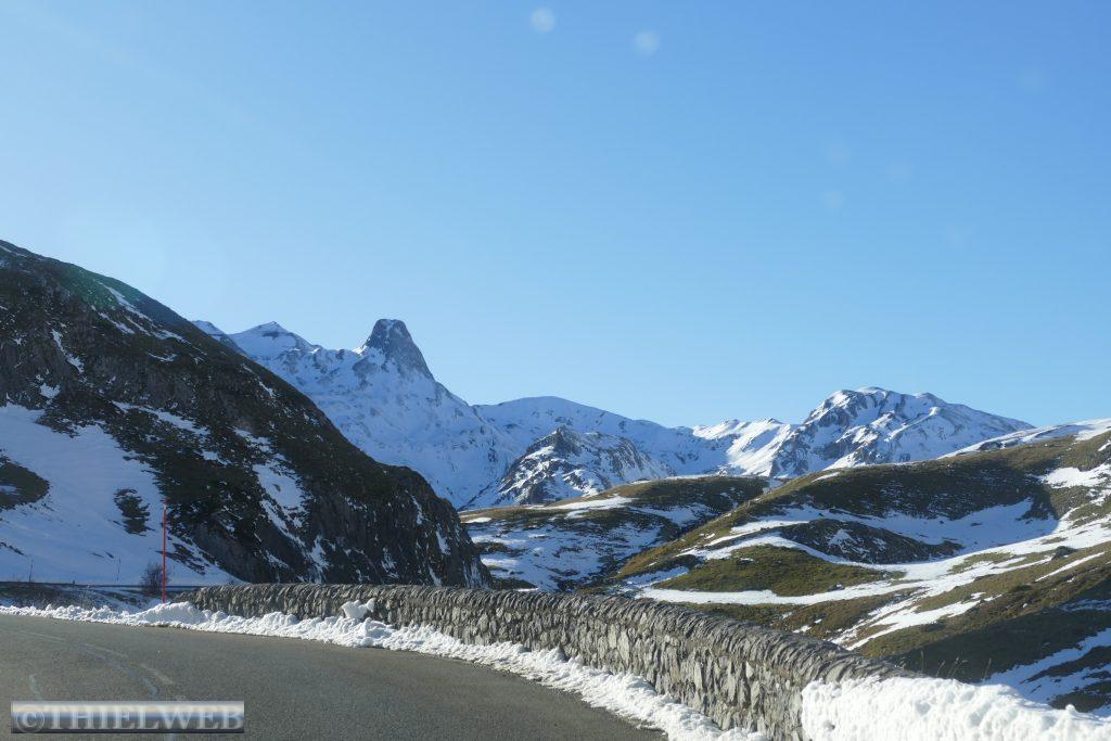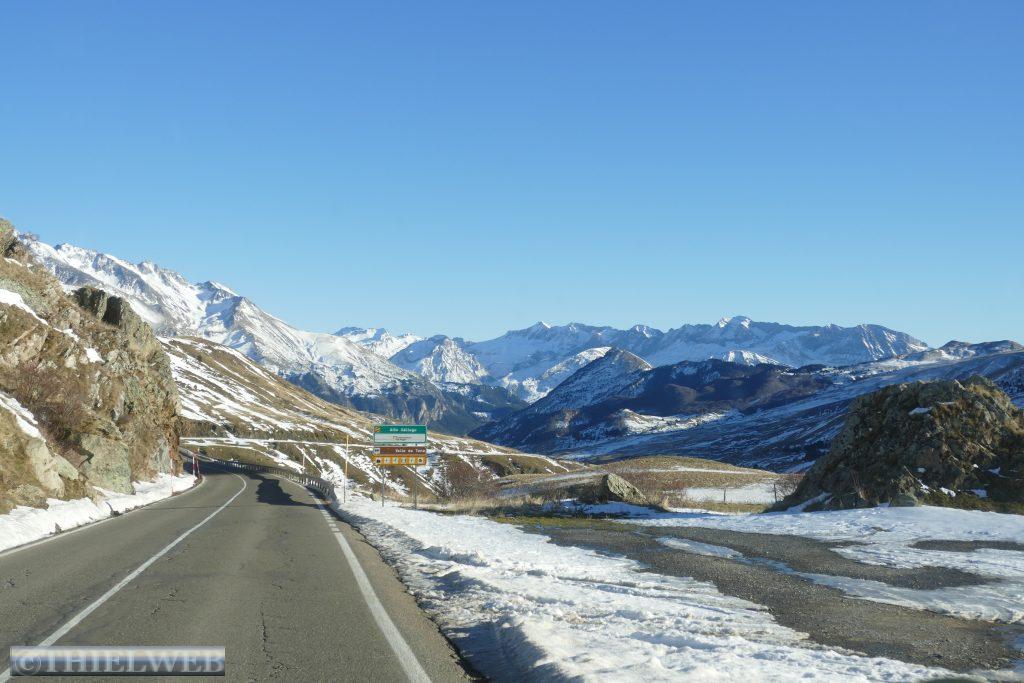 – 1 °C und dichter Nebel. Nach einer kalten Nacht geht es heute weiter Richtung Spanien, nachdem wir nochmal etwas getankt haben. Der Nebel will sich heute einfach nicht auflösen. Erst gegen Mittag ist er urplötzlich verschwunden und die Sonne strahlt vom blauen Himmel. Als wir Pau bei 14 °C erreichen, sehen wir am Horizont das grandiose Panorama der PyrenĂ€en. Immer weiter klettern wir von 200 m bis zum Portalet Pass auf 1.794 m. Hier ĂŒberqueren wir auch die Grenze zwischen Frankreich und Spanien. Danach geht es wieder hinunter auf 1.184 m, wo wir an der Seilbahn in Panticosa unseren Ăbernachtungsplatz haben.