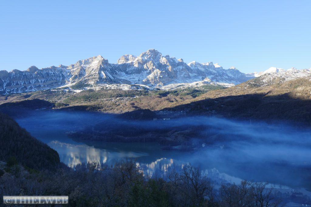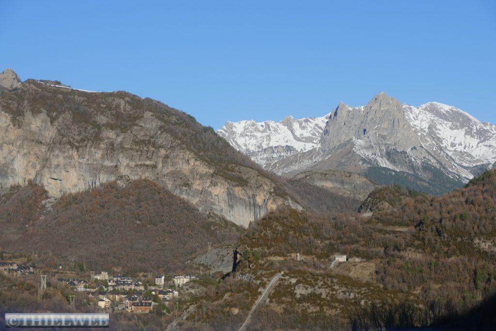 Am Morgen werden die Berge schon von der Sonne verwöhnt. Wir starten bei 3 °C durch den Ort Panticosa und dann auf der Routa de los Miradores. Steil steigt der Weg bergan und wir erreichen schon bald den höchsten Punkt, den Mirador de Santa MarĂa. Hier befindet sich ein Bunker der „Linea P“, eine PyrenĂ€en-Verteidigung aus dem spanischen BĂŒrgerkrieg. Ăber den Pena Santa Maria kommen wir zum Aussichtspunkt Las Sabinas mit Blick auf die CaldarĂ©s. Es folgt der Aussichtspunkt „O Caxico“ und âO Castiechoâ mit Panoramablick auf den BĂșbal-Stausee und Peña Telera. Wir erreichen den ausgestorben wirkenden Ort Pueyo de Jaca und treten den RĂŒckweg auf einem schönen Waldpfad an. Schon bald erreichen wir wieder Panticosa und da die Pasarelas im Winter geschlossen ist, klettern wir noch hinauf zum Aussichtspunkt „Del Tozal de O Caxico“ mit einem schönen Blick auf Panticosa.